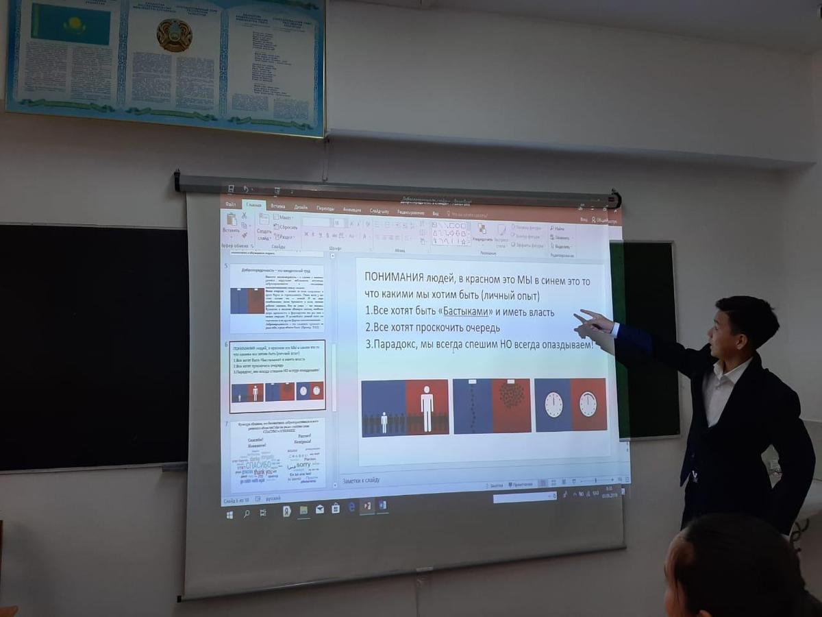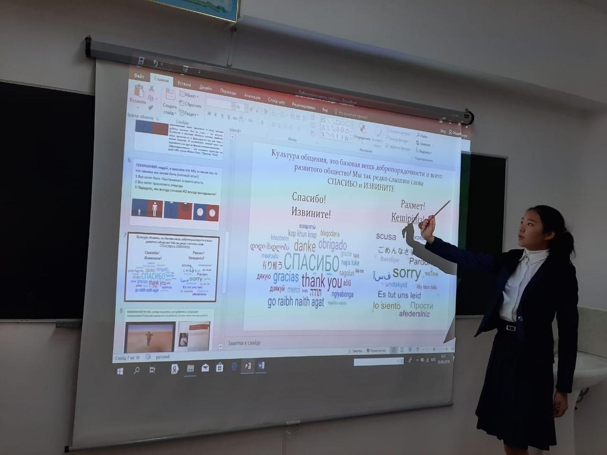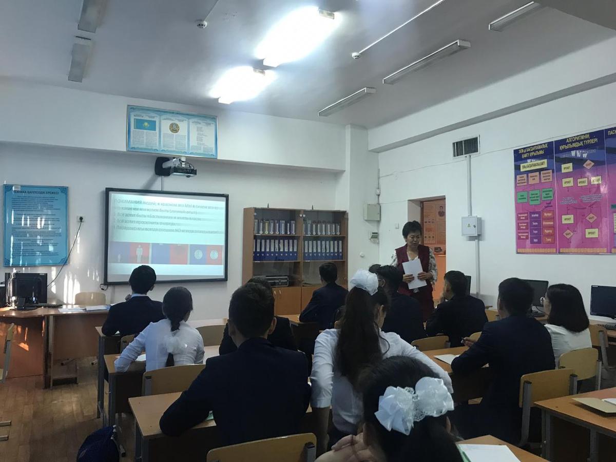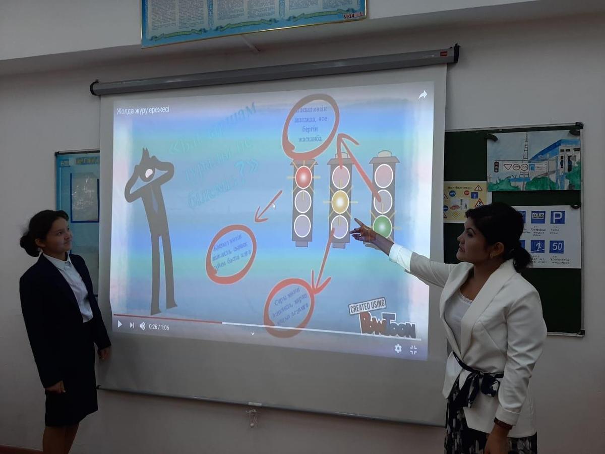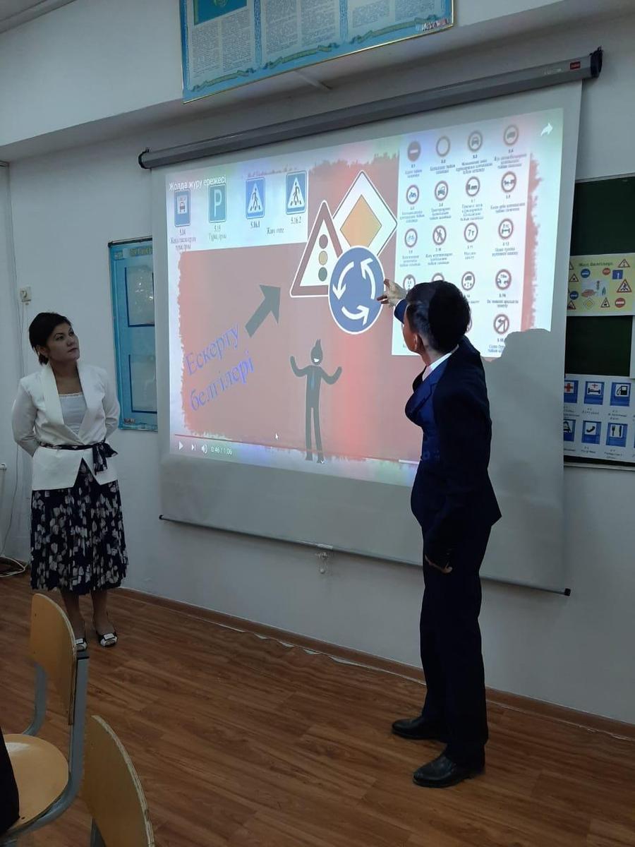 Мақсаты: Оқушыларға жолда жүру ережесін түсіндіру, жол белгілері туралы анықтама беру. Ұқыптылыққа, әдептілікке, жол тәртібін сакқтауға тәрбиелеу. 9-11 сынып оқушыларына «Әдептілік пен парасаттылық» тақырыбында сынып сағаты өтілді.