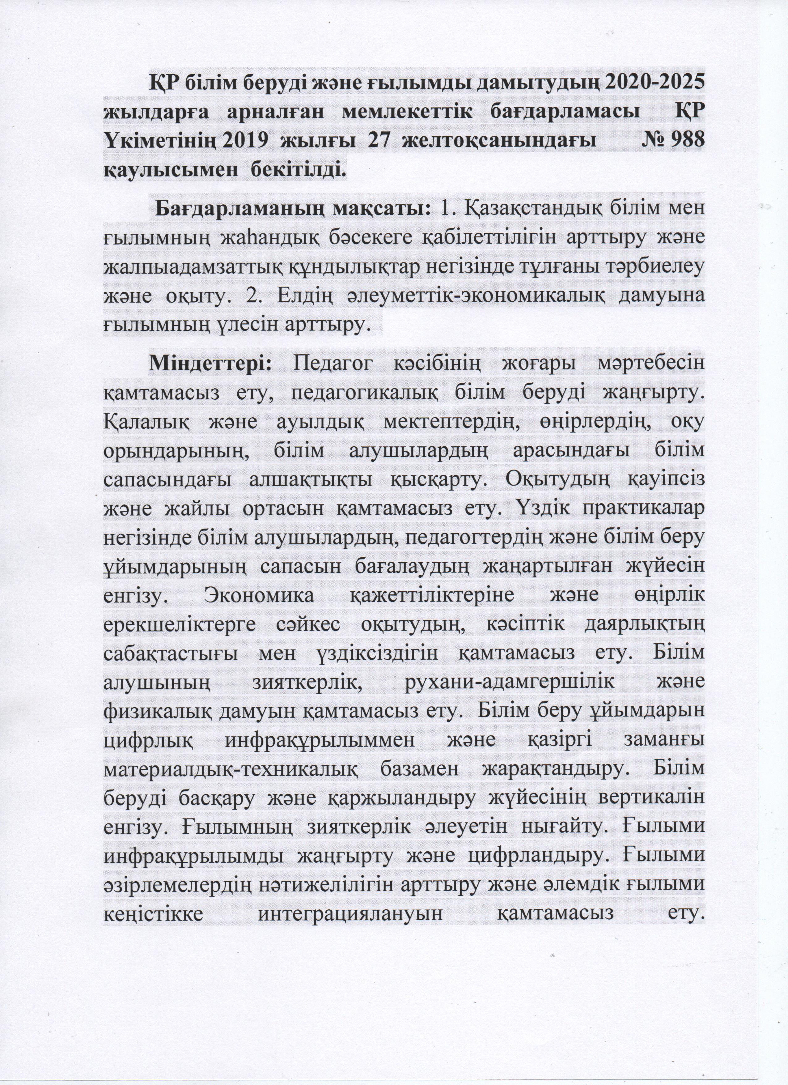 17 ақпан 2021 0 1 2 3 4 5 ҚР Білім беруде және Ғылымды дамытудың 2020-2025 жылдарға арналған бағдарлама