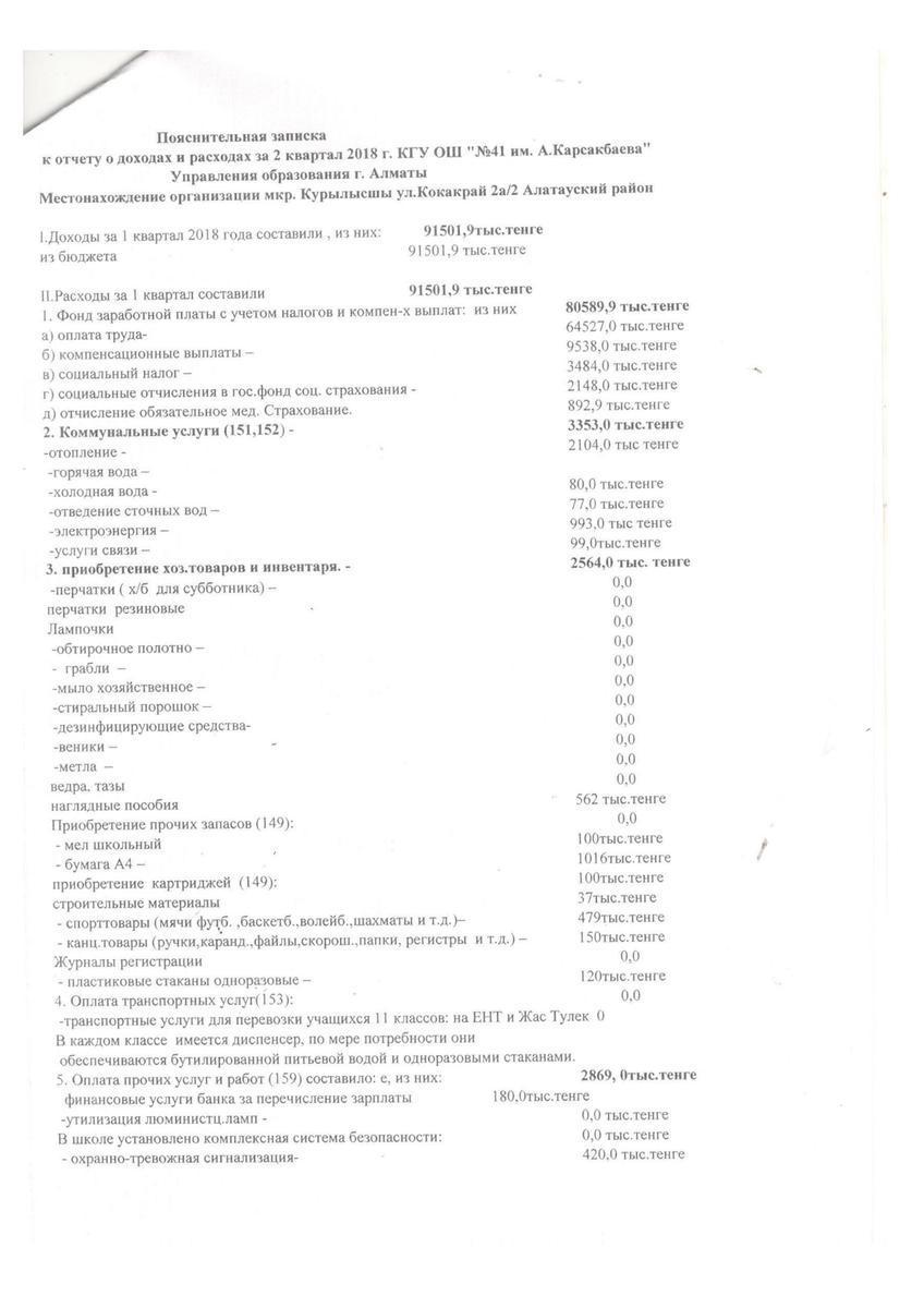 » 2018 жылғы 2 тоқсандағы кірістер мен шығыстар туралы есеп