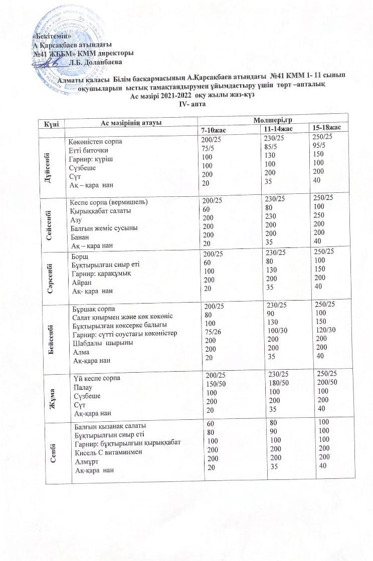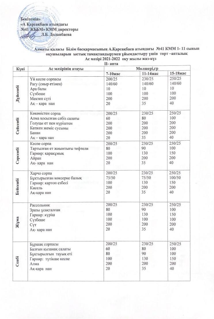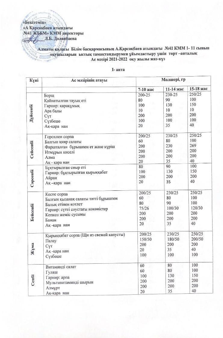 » Ас мәзірі жаз-күз айына арналған 2021-2022 оқу жылы