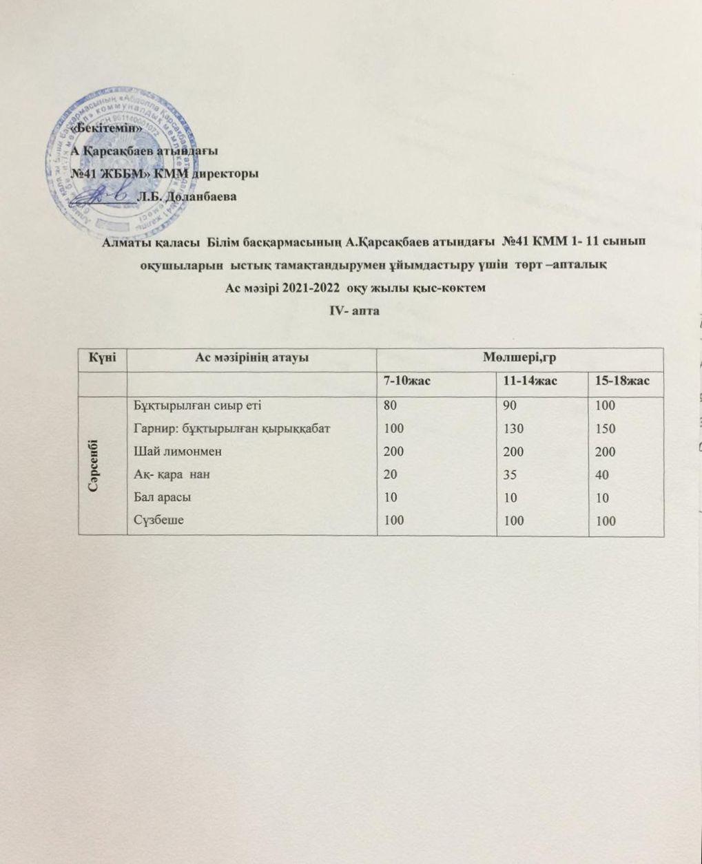Ас мәзірі мұғалімдерге және оқушыларға арналған 2021-2022 оқу жылы