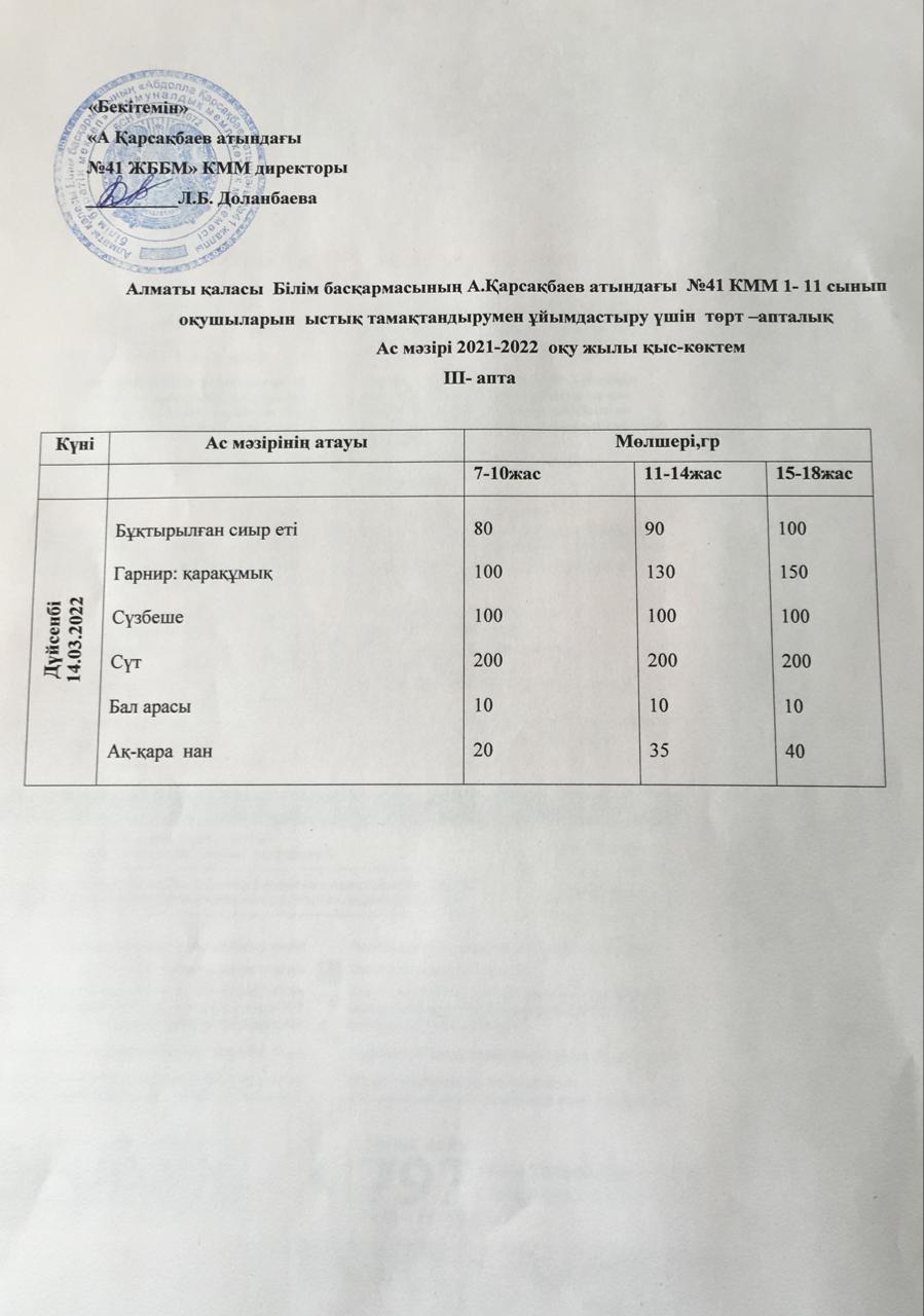 Ас мәзірі 14.03.2022 ж