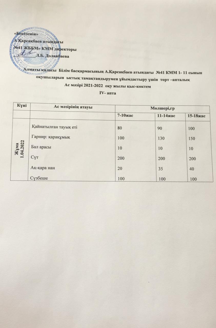Ас мәзірі мұғалімдерге және оқушыларға арналған 2021-2022 оқу жылы