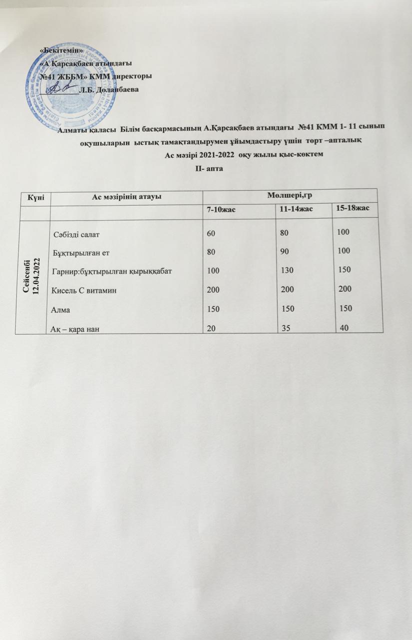 Ас мәзірі мұғалімдерге және оқушыларға арналған 2021-2022 оқу жылы