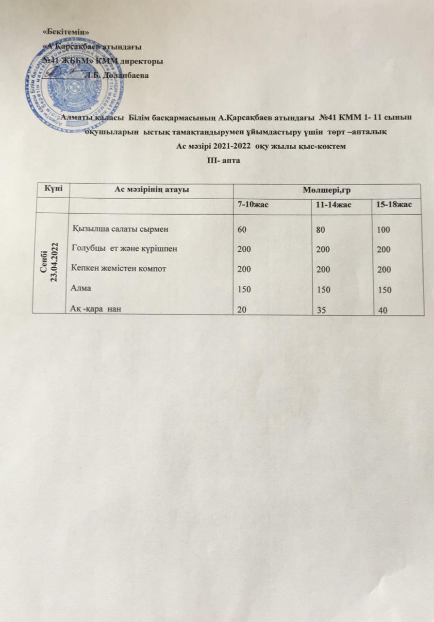 Ас мәзірі мұғалімдерге және оқушыларға арналған 2021-2022 оқу жылы