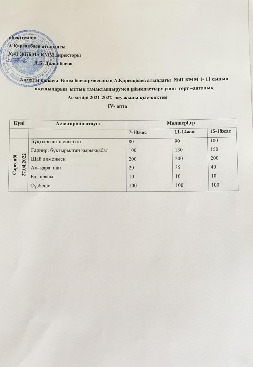 Ас мәзірі мұғалімдерге және оқушыларға арналған 2021-2022 оқу жылы