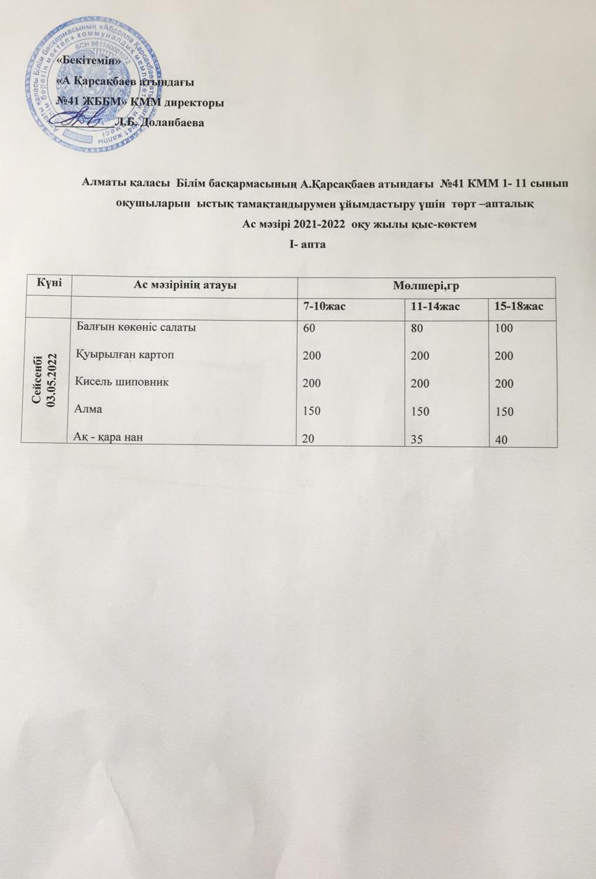Ас мәзірі мұғалімдерге және оқушыларға арналған 2021-2022 оқу жылы