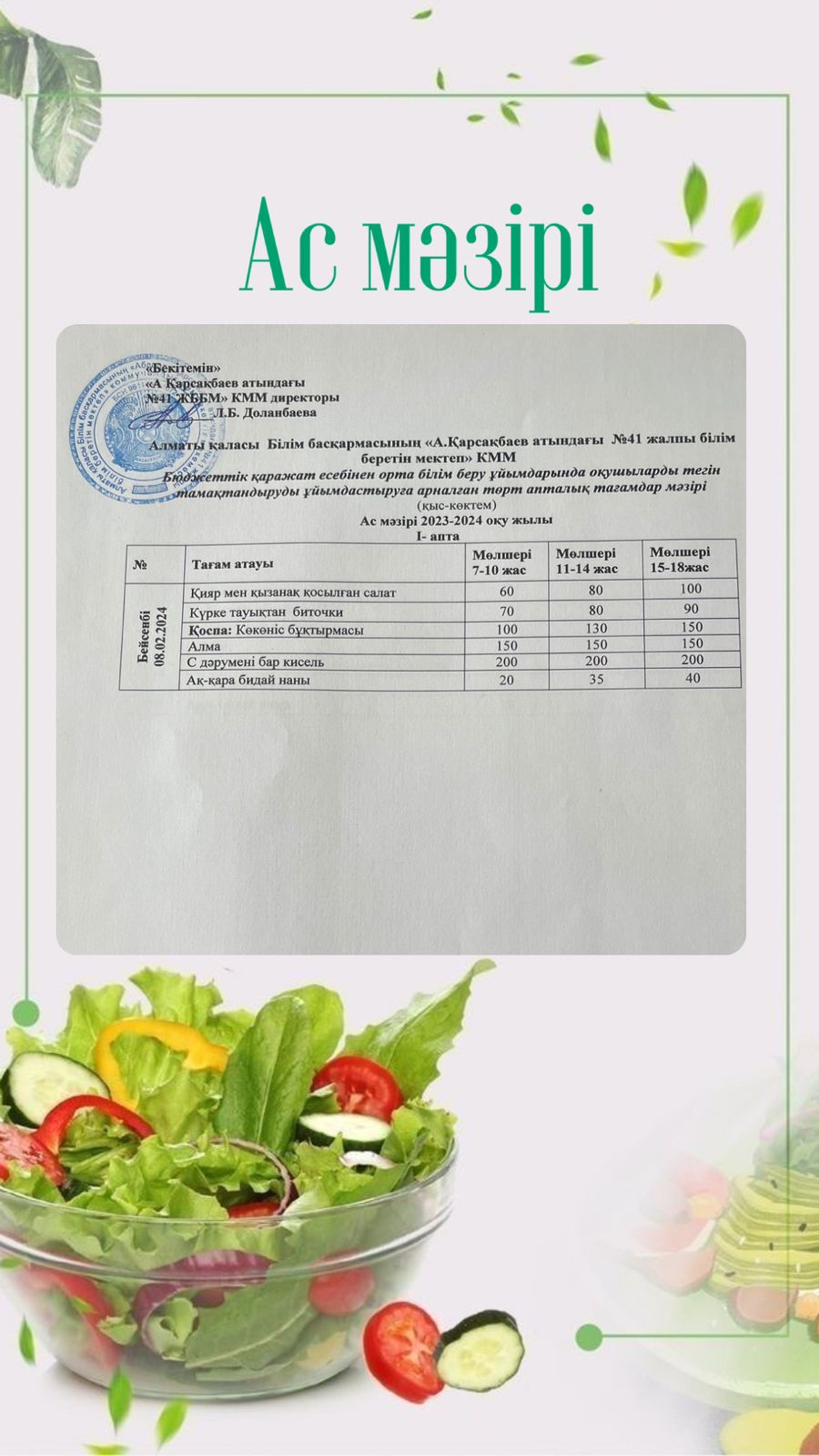 Ас мәзірі 30.01.2024 ж. 4-ші апта 2-ші күн