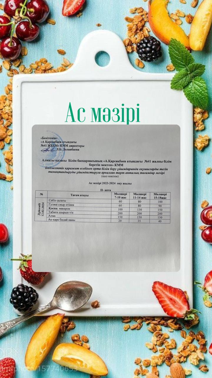 Ас мәзірі 12.02.2024 жыл. II апта I күн.