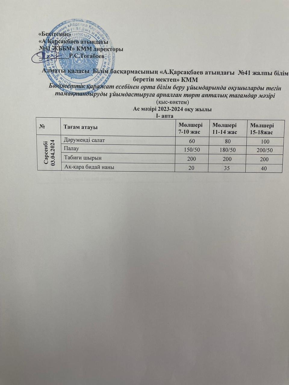 Ас мәзірі 03.04.2024 жыл. I апта III күн.