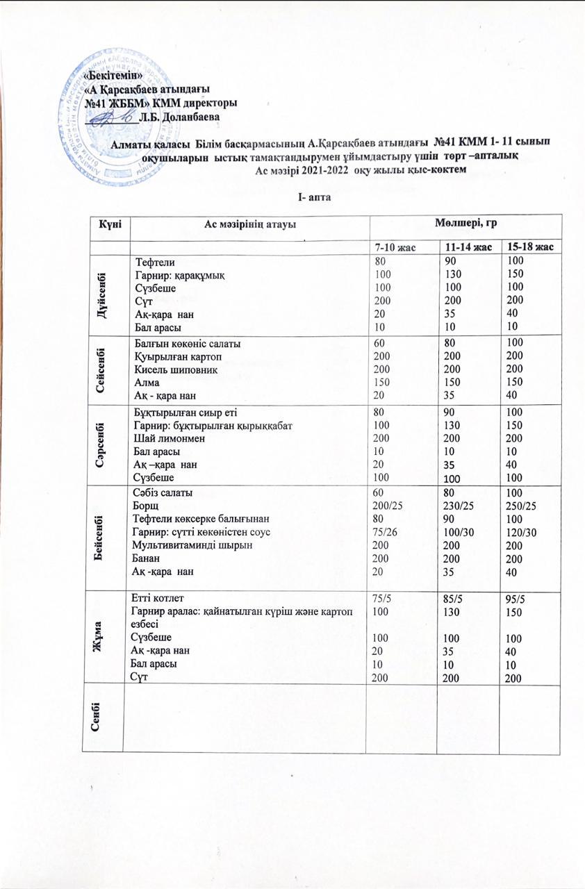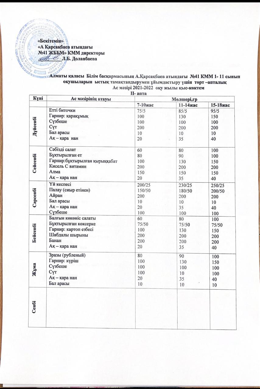 Ас мәзірі жаз-күз айына арналған 2021-2022 оқу жылы