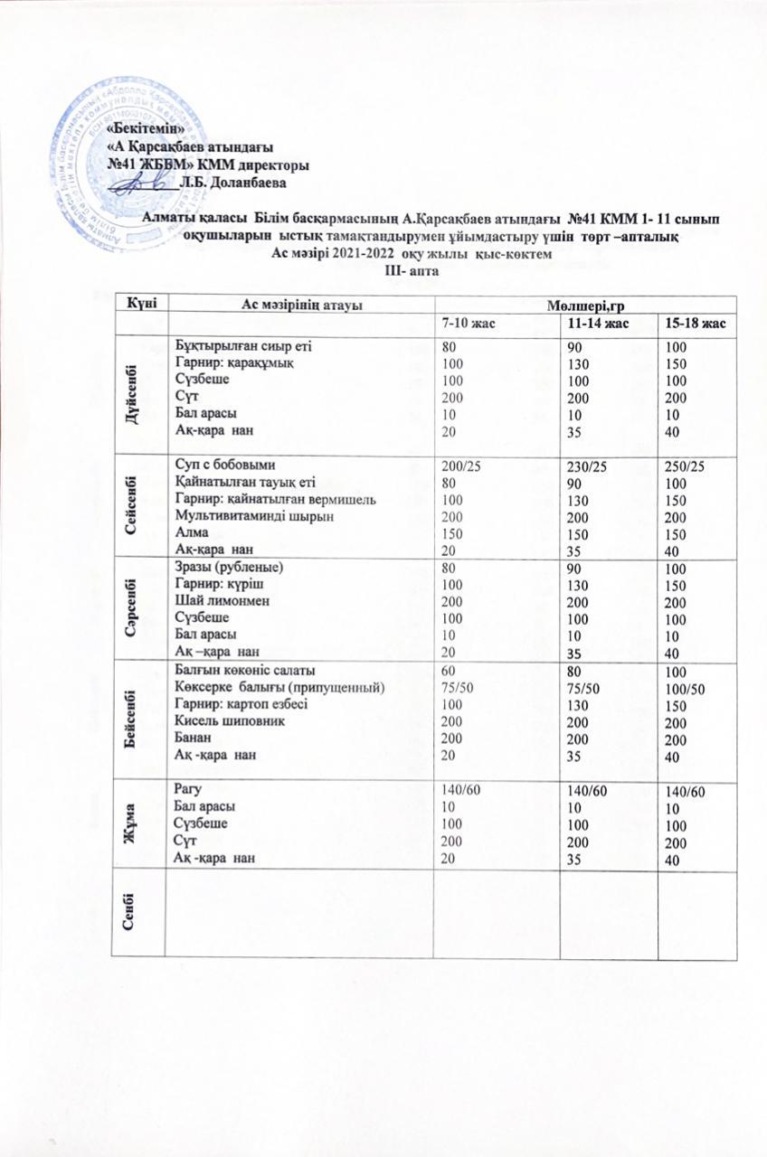» 2021-2022 оқу жылына арналған ас мәзірі қыс-көктем (қаңтар)