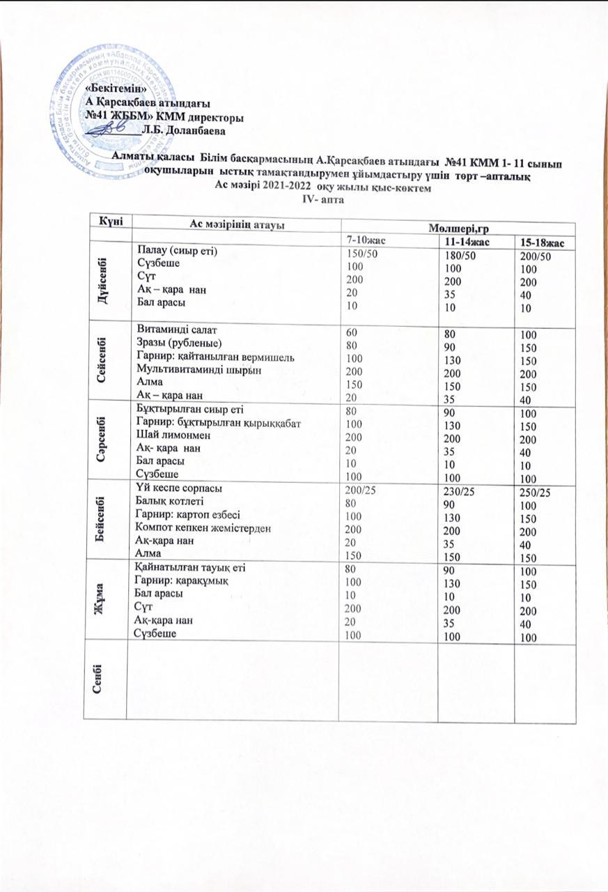 2021-2022 оқу жылына арналған ас мәзірі қыс-көктем (қаңтар)