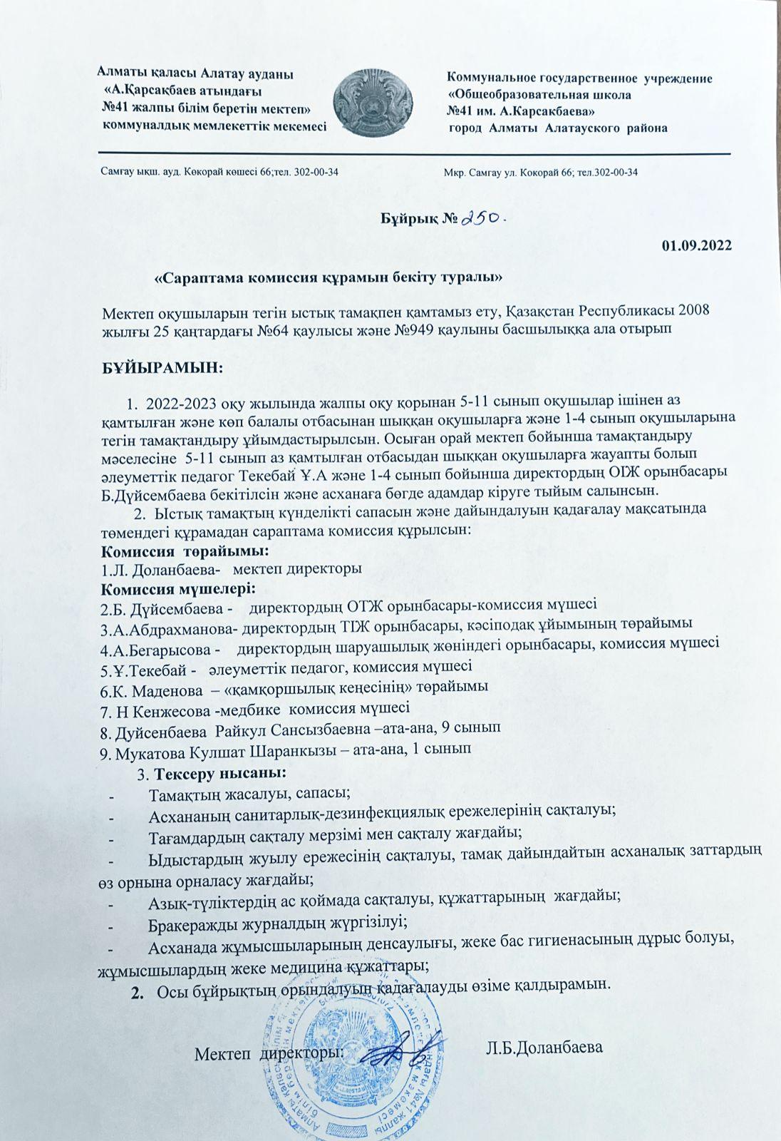 Сараптама комиссия құрамын бекіту 2022-2023 оқу жылы
