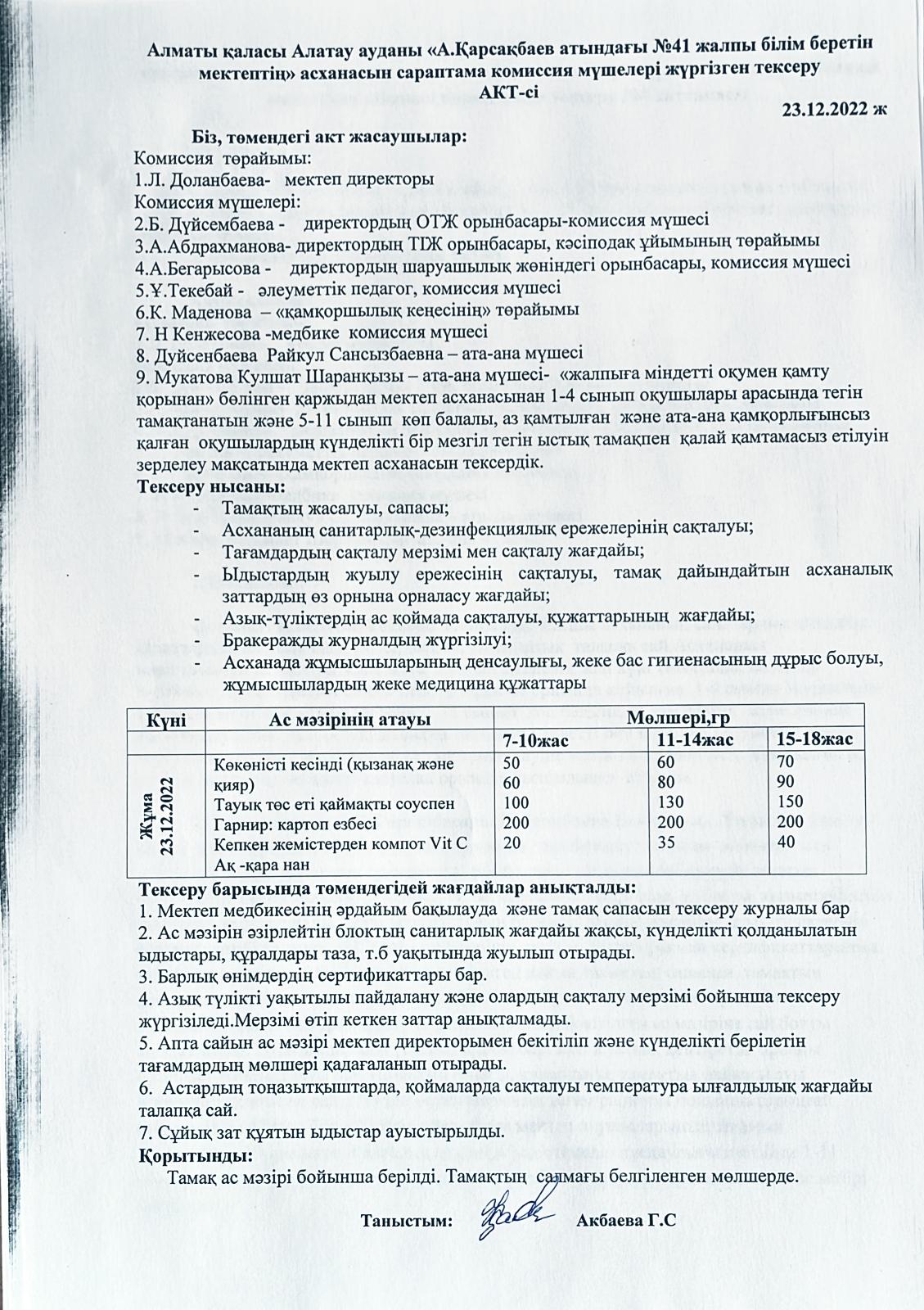 Сараптама комиссиясының тексеру АКТ-сі 05.12.2022 жыл