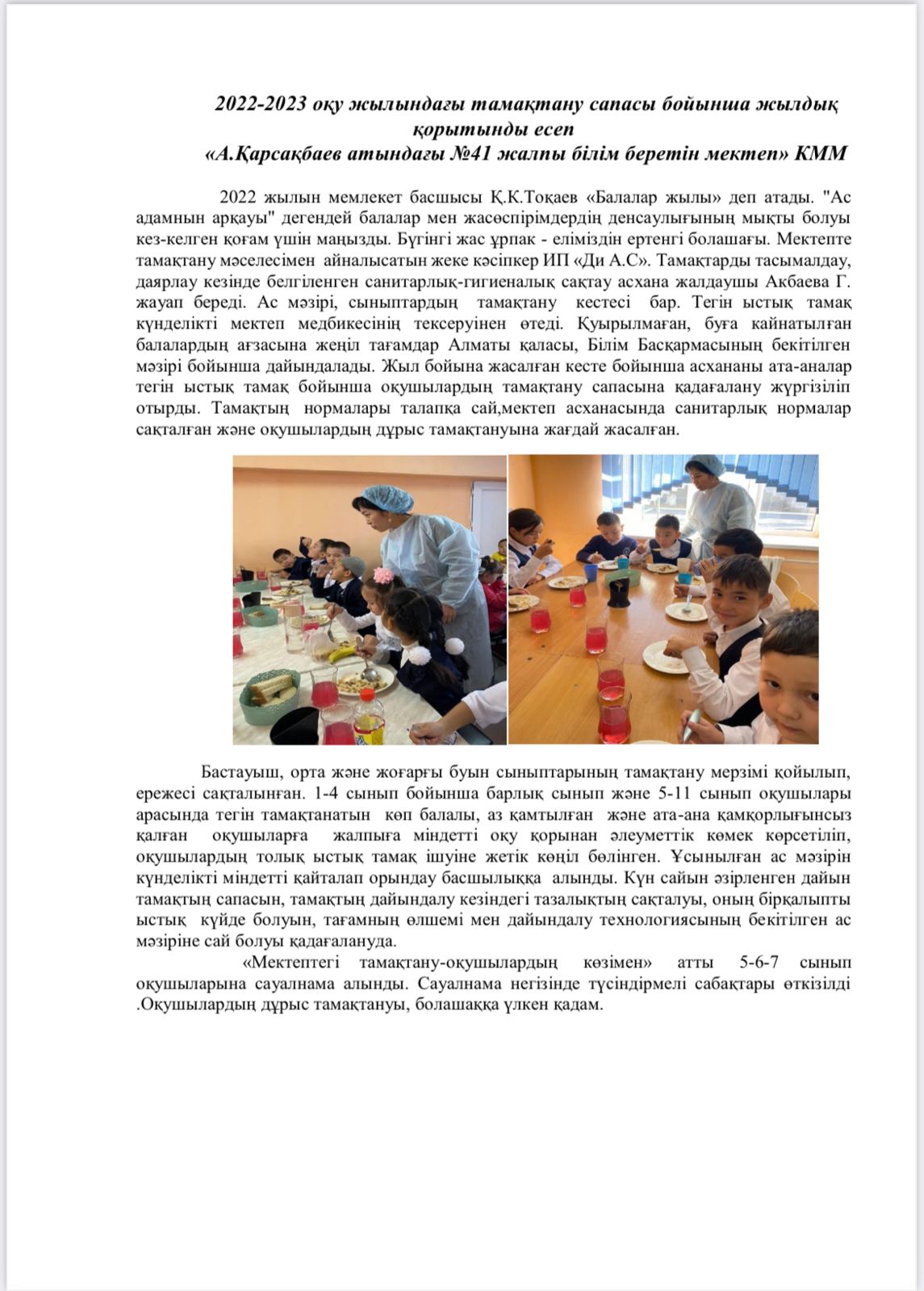 2022-2023 оқу жылындағы тамақтану сапасы бойынша жылдық қорытынды есеп