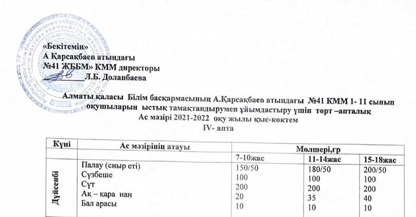 2021-2022 оқу жылына арналған ас мәзірі қыс-көктем (қаңтар)