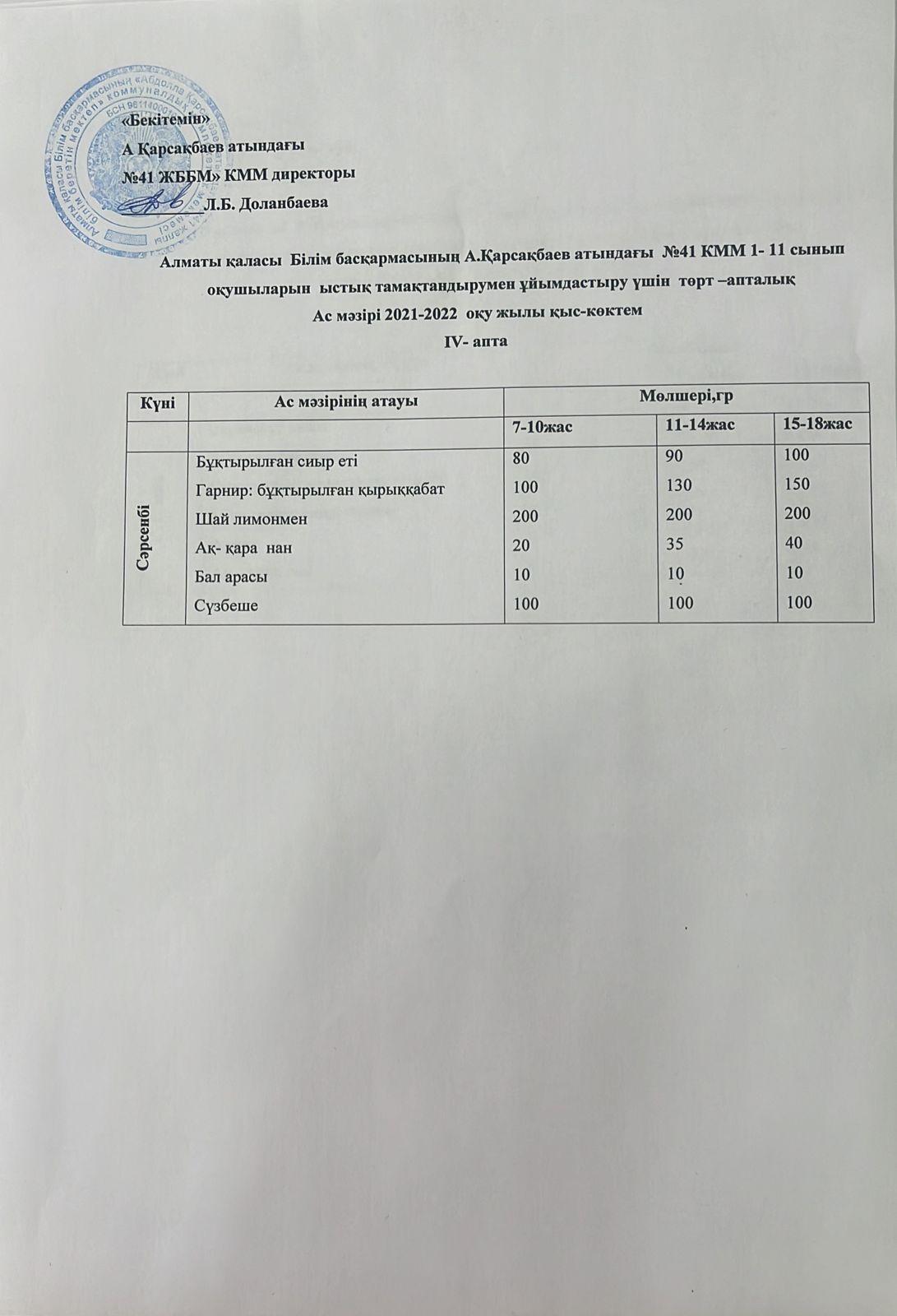 2021-2022 оқу жылына арналған ас мәзірі қыс-көктем (қаңтар)