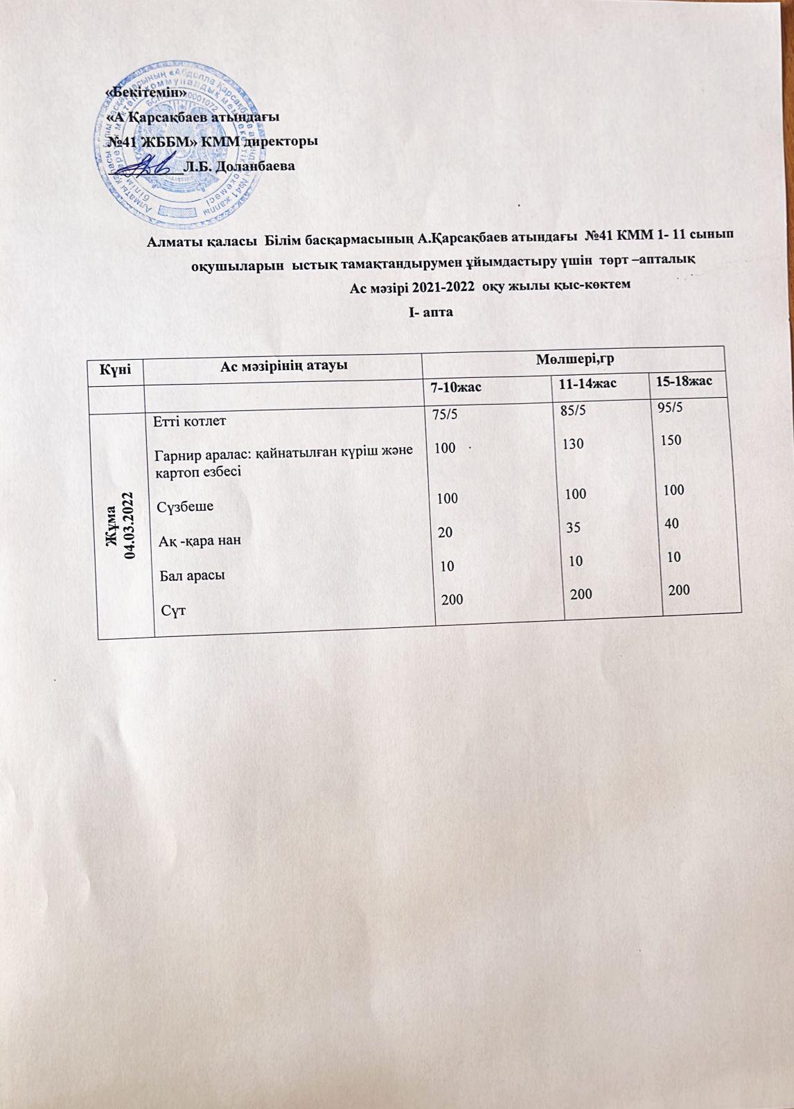 Ас мәзірі мұғалімдерге және оқушыларға арналған 2021-2022 оқу жылы