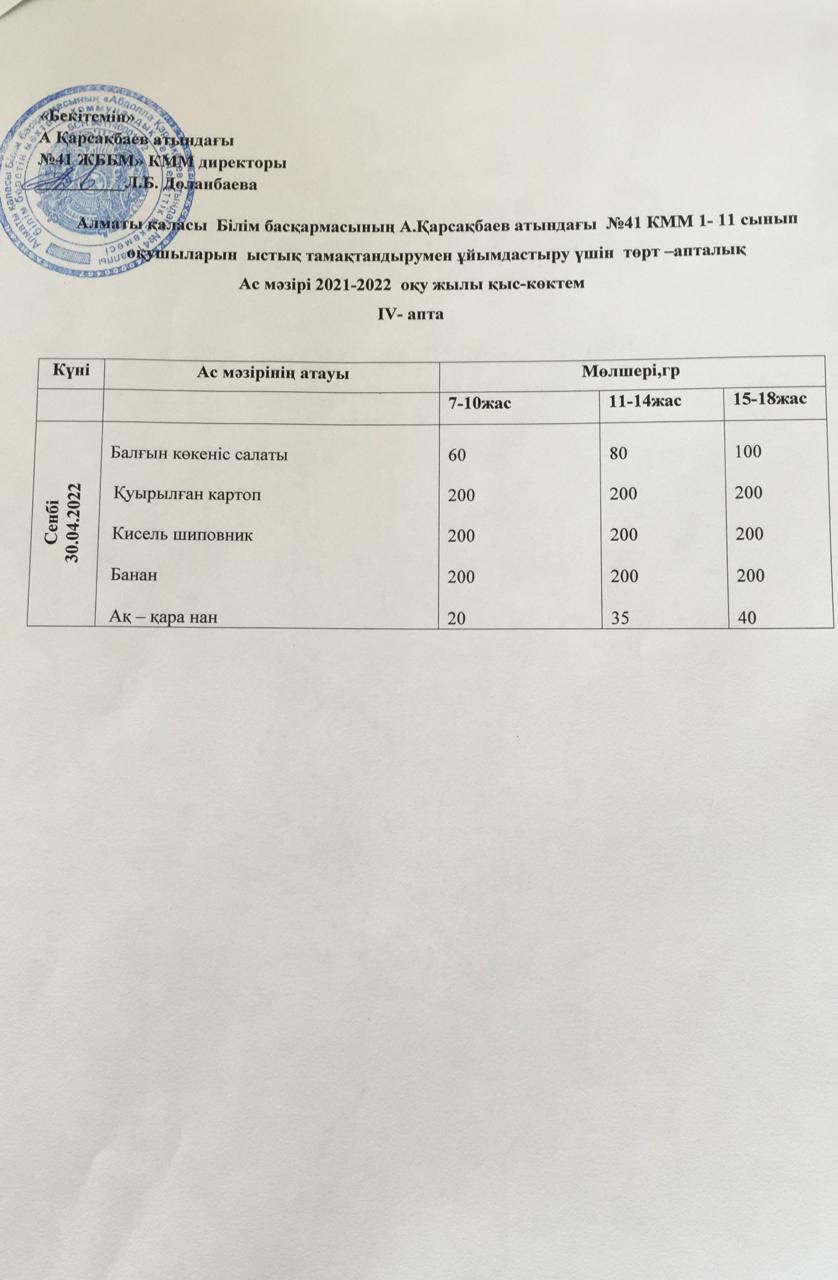 Ас мәзірі 30.04.2022