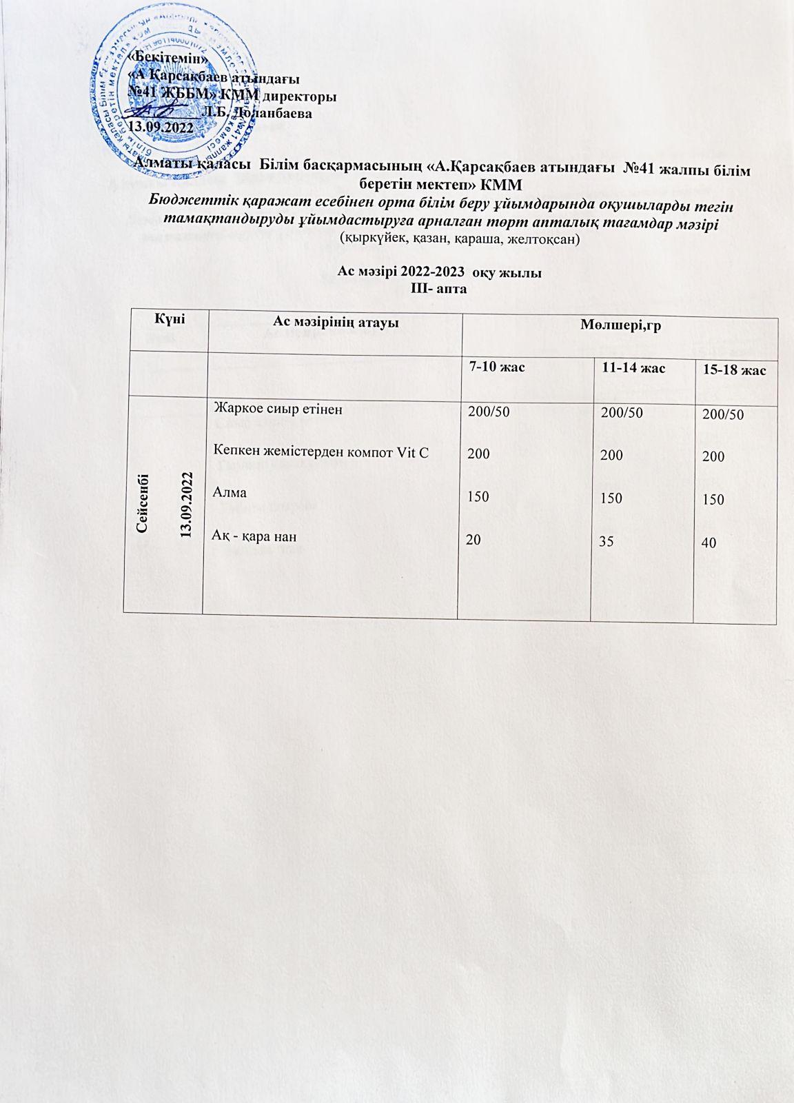 Ас мәзірі мұғалімдерге және оқушыларға арналған 2021-2022 оқу жылы