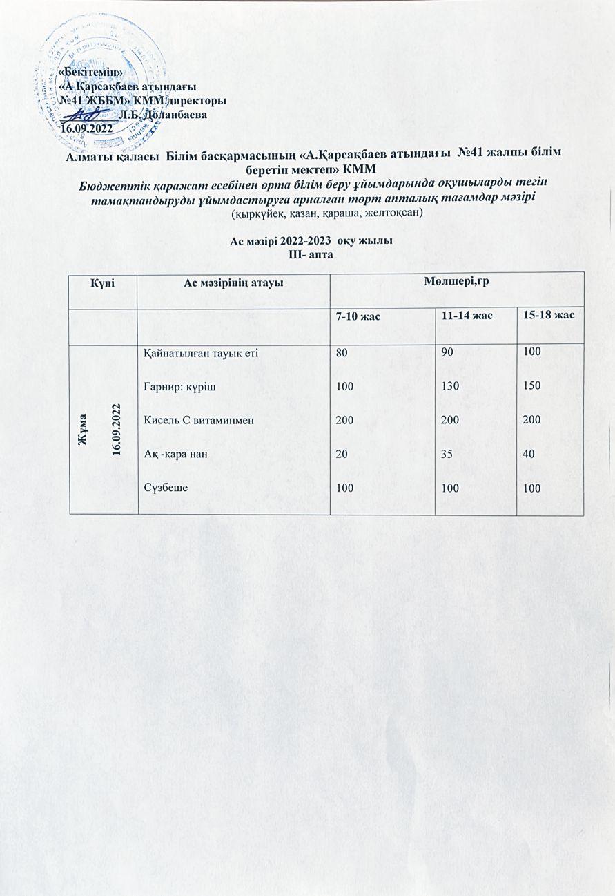 Ас мәзірі мұғалімдерге және оқушыларға арналған 2021-2022 оқу жылы
