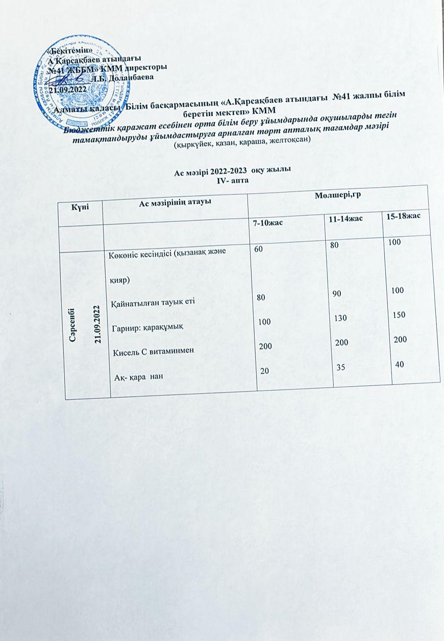 Ас мәзірі мұғалімдерге және оқушыларға арналған 2021-2022 оқу жылы