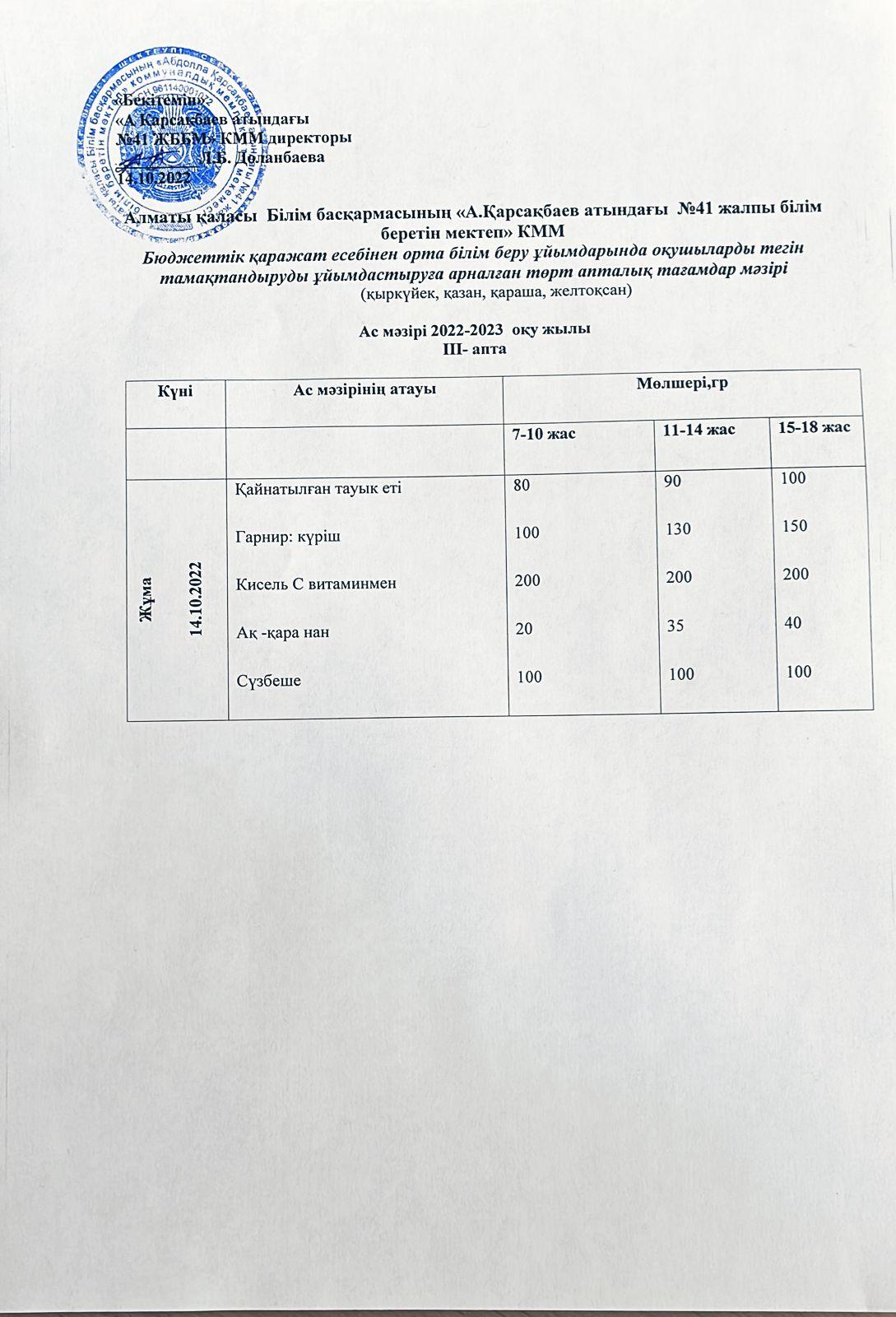 Ас мәзірі мұғалімдерге және оқушыларға арналған 2021-2022 оқу жылы