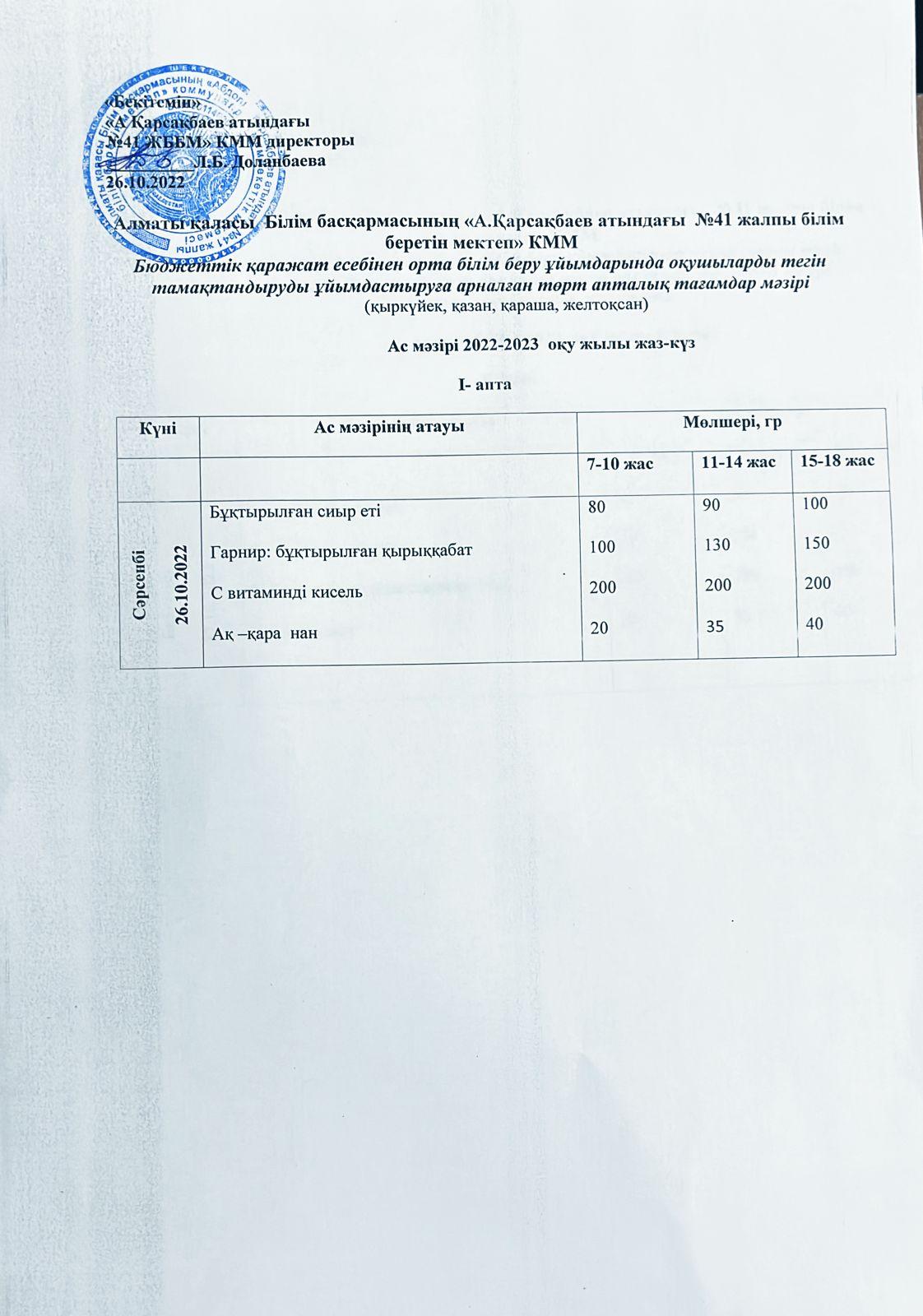 Ас мәзірі 26.10.2022