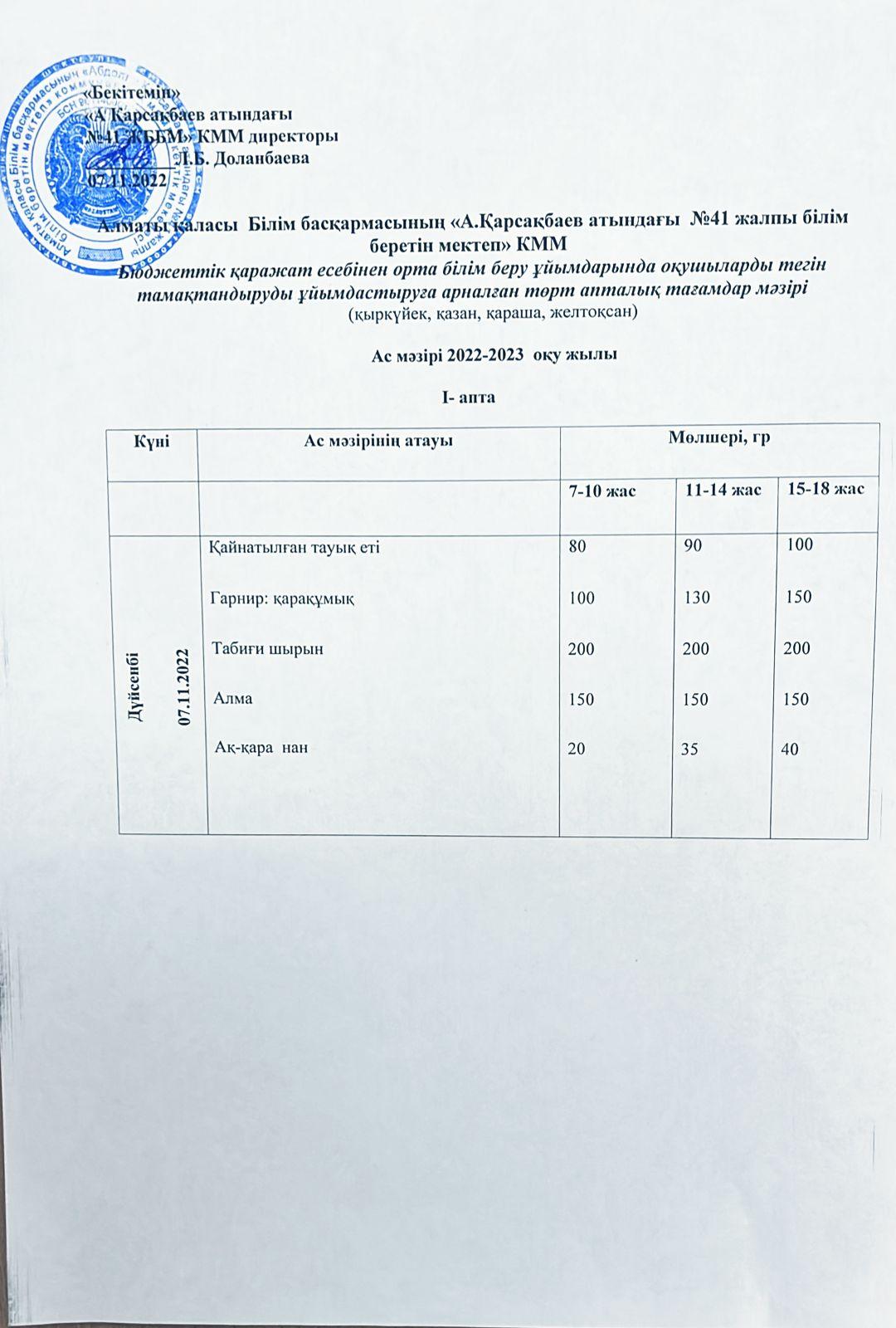 Ас мәзірі 07.11.2022