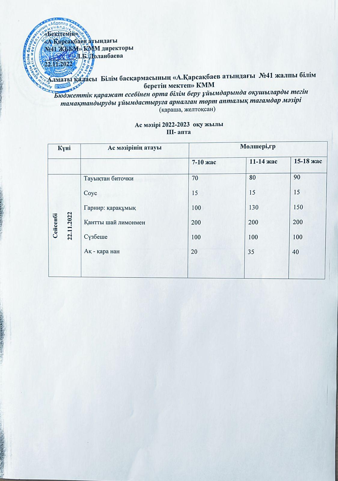 Перспективалық ас мәзірі 2022-2023 оқу жылы (қыркүйек,қазан, қараша,желтоқсан)