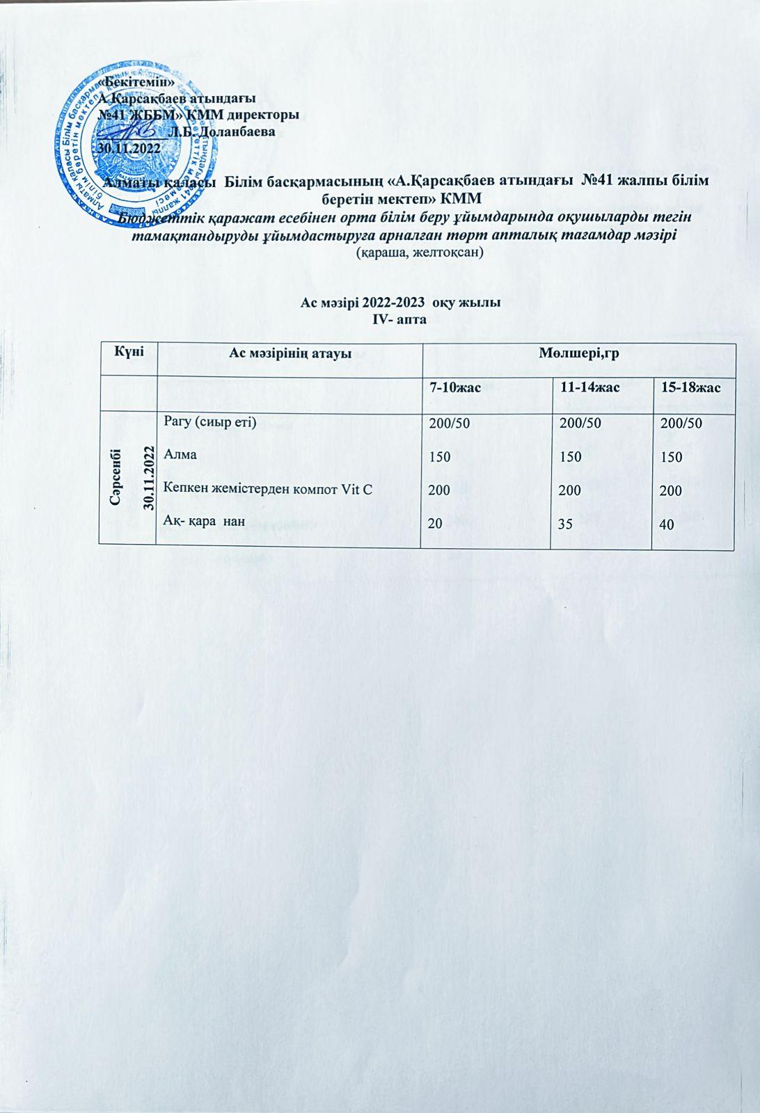 Ас мәзірі 30.11.2022