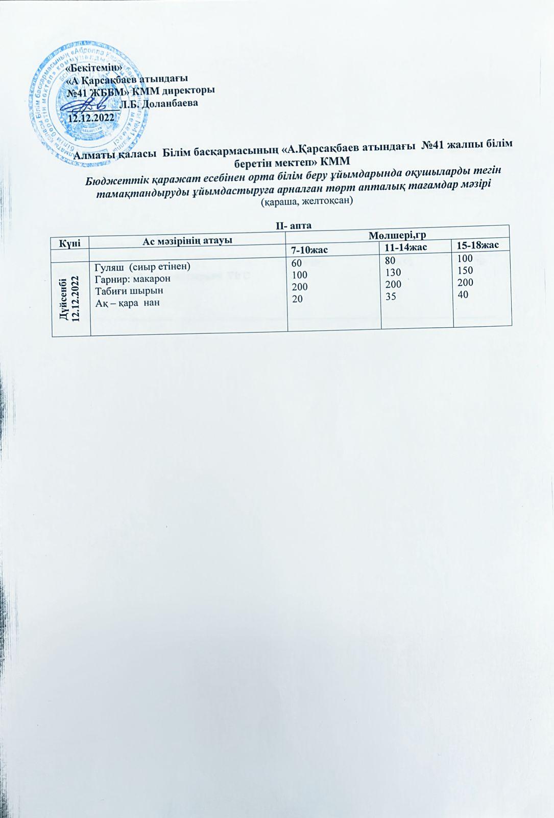 Перспективалық ас мәзірі 2022-2023 оқу жылы (қыркүйек,қазан, қараша,желтоқсан)
