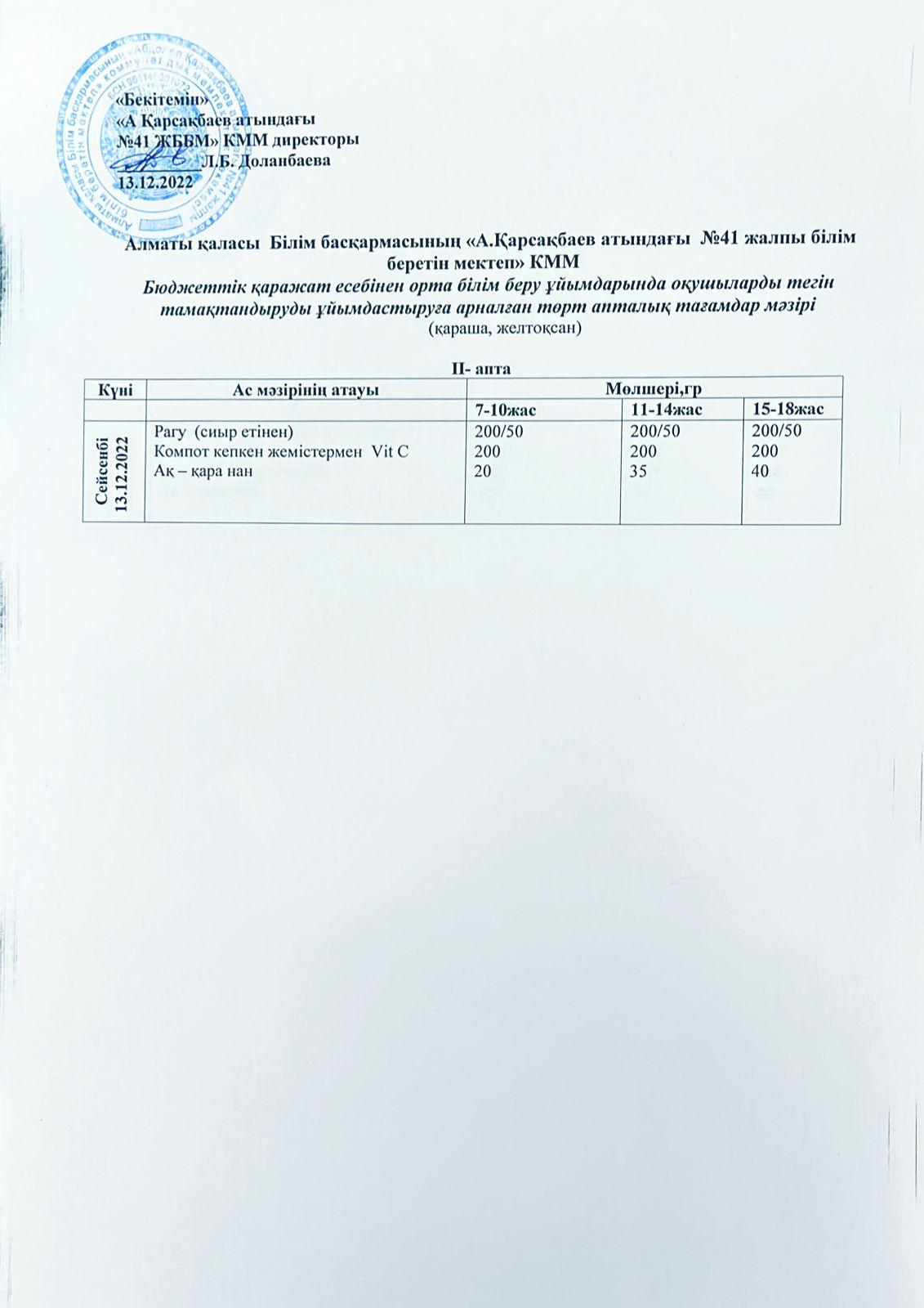 Перспективалық ас мәзірі 2022-2023 оқу жылы (қыркүйек,қазан, қараша,желтоқсан)