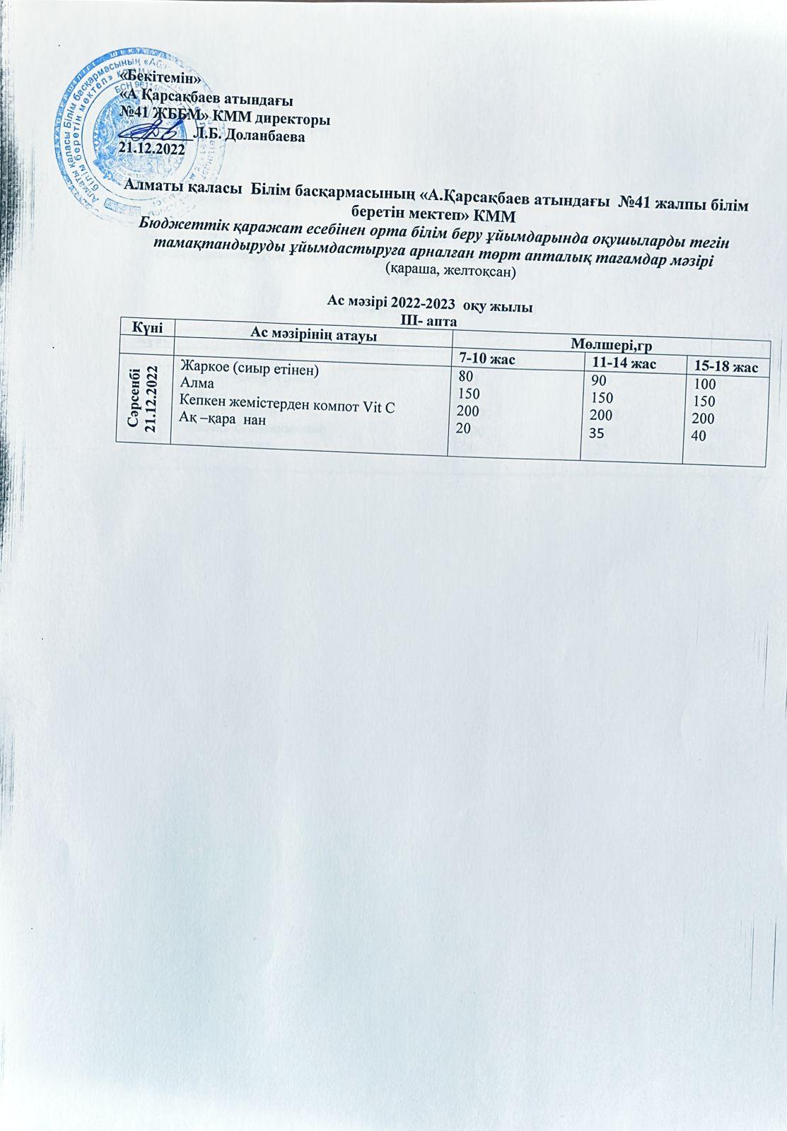 Перспективалық ас мәзірі 2022-2023 оқу жылы (қыркүйек,қазан, қараша,желтоқсан)