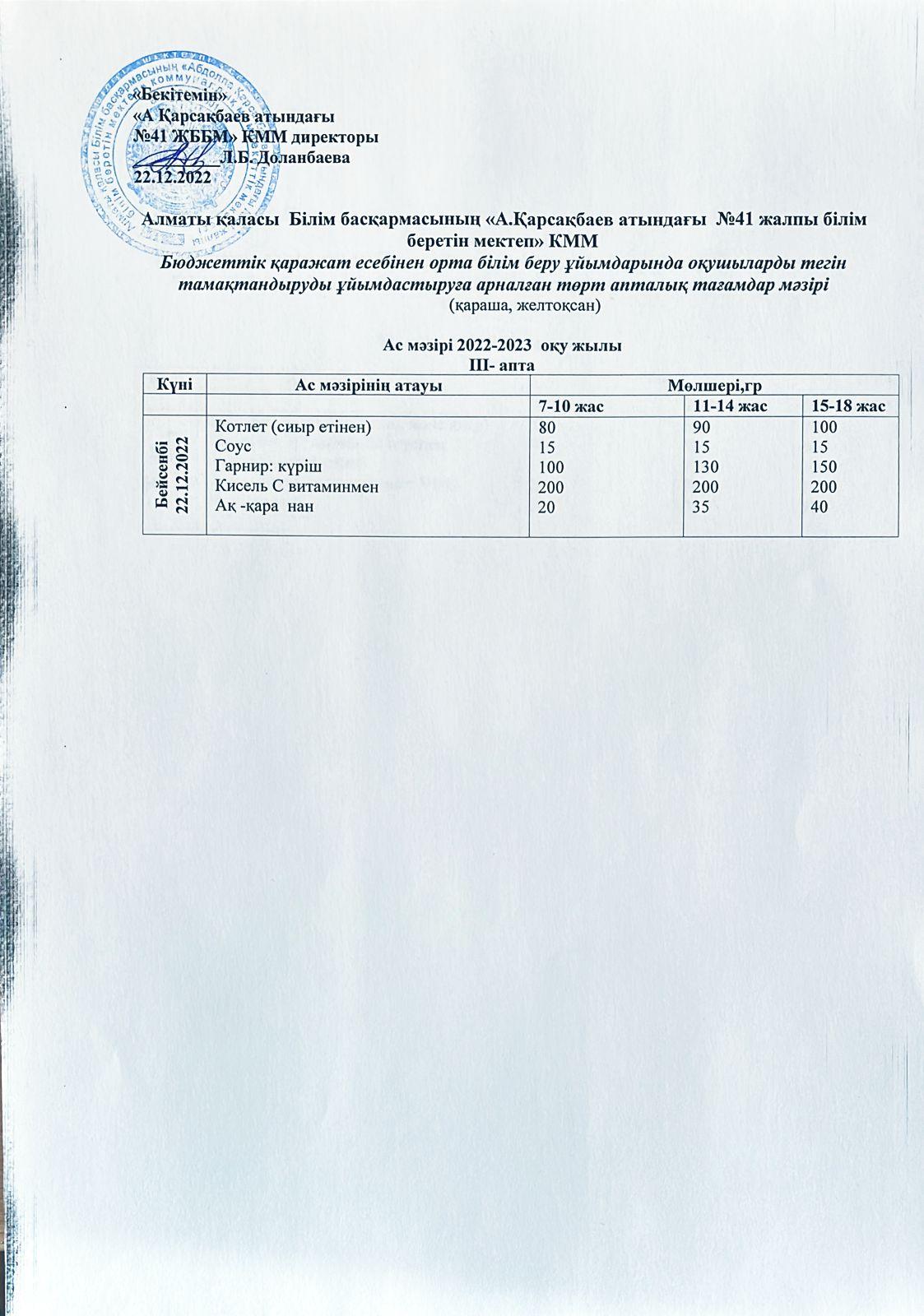 Перспективалық ас мәзірі 2022-2023 оқу жылы (қыркүйек,қазан, қараша,желтоқсан)