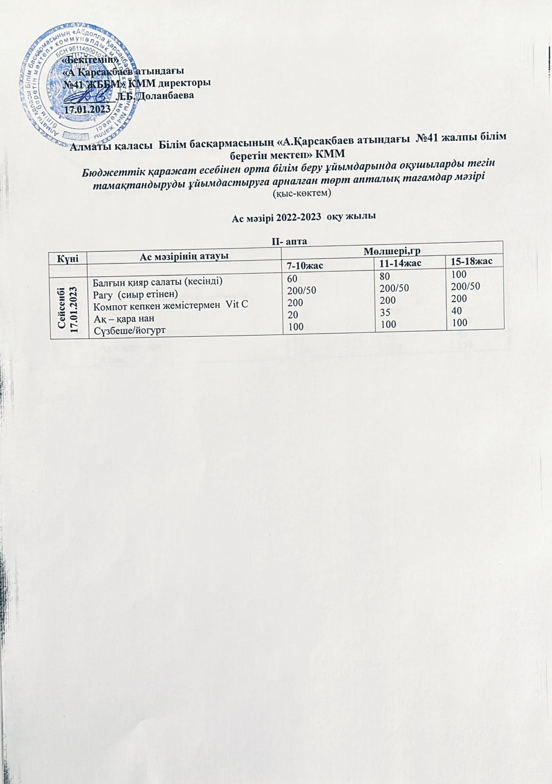 Қыс-көктем мезгіліне арналған жаңа ас мәзірі 2022-2023 оқу жылы
