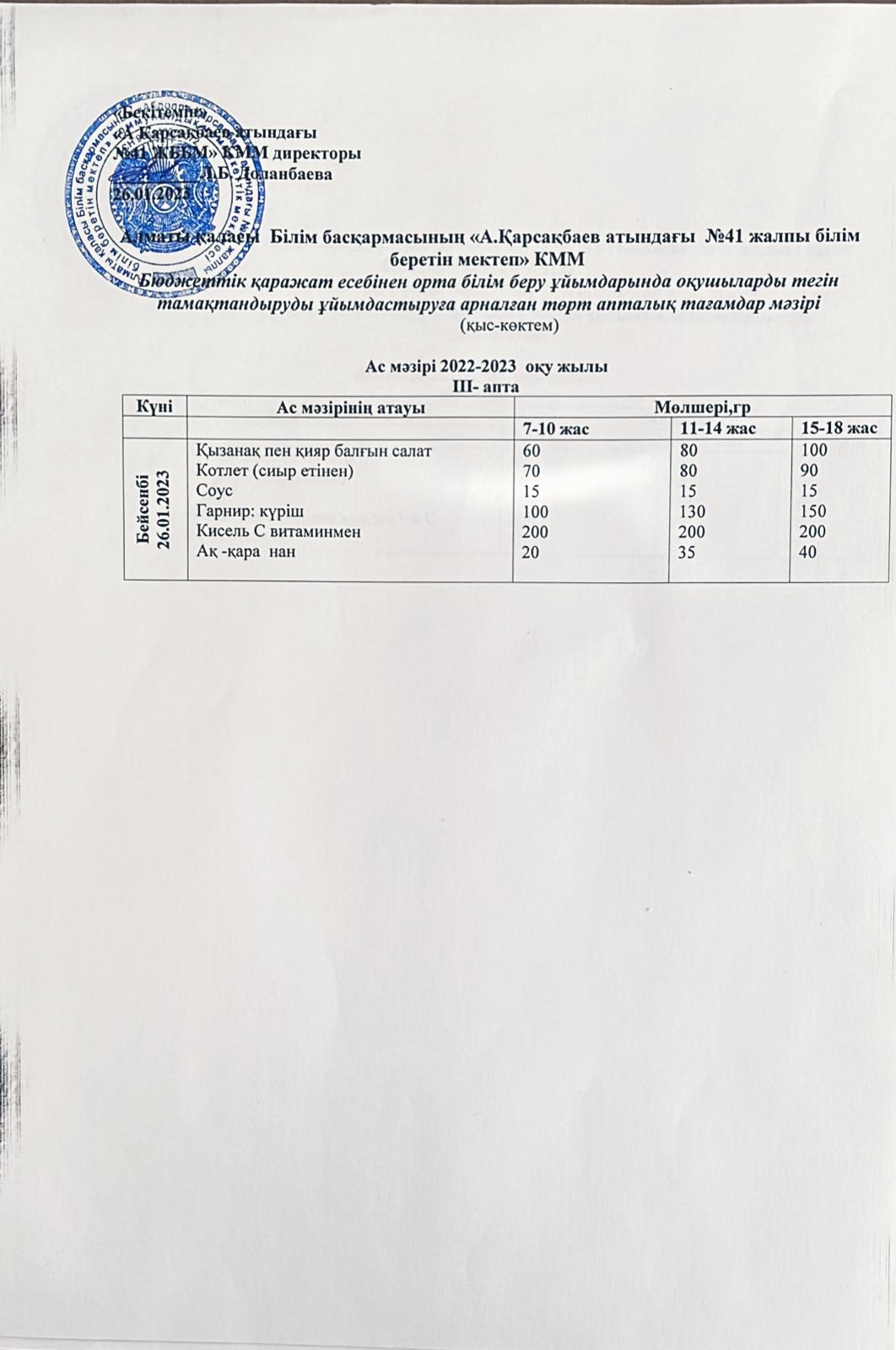 Ас мәзірі 26.01.2023