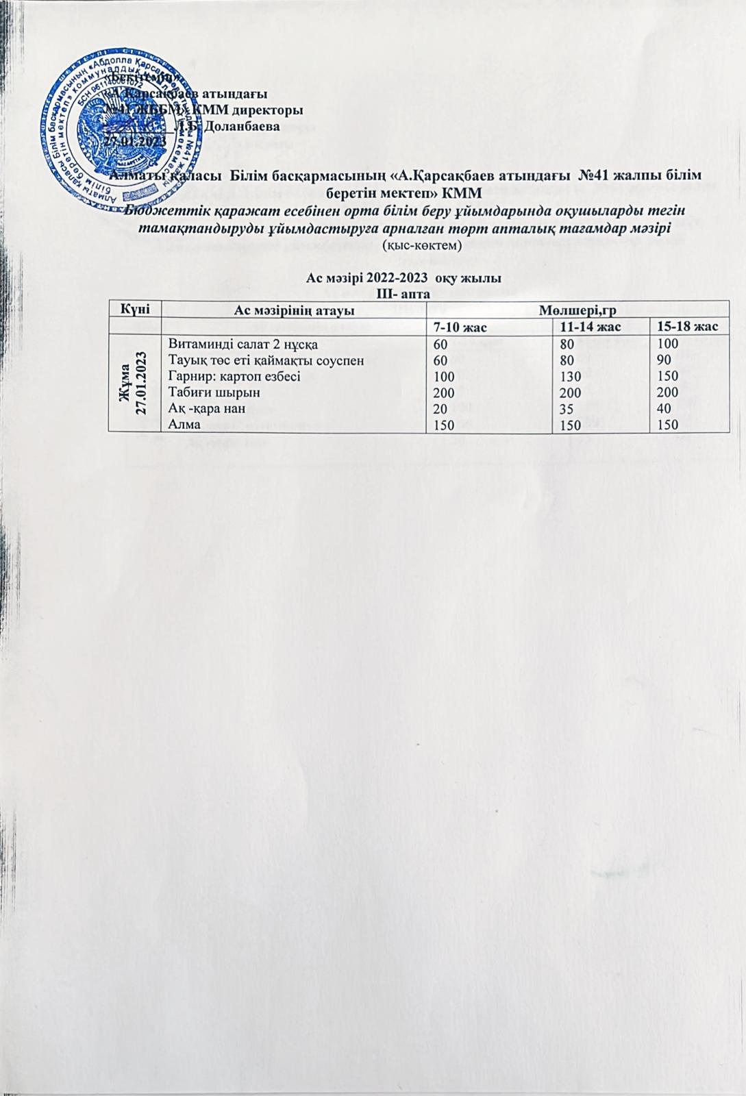 Ас мәзірі 27.01.2023