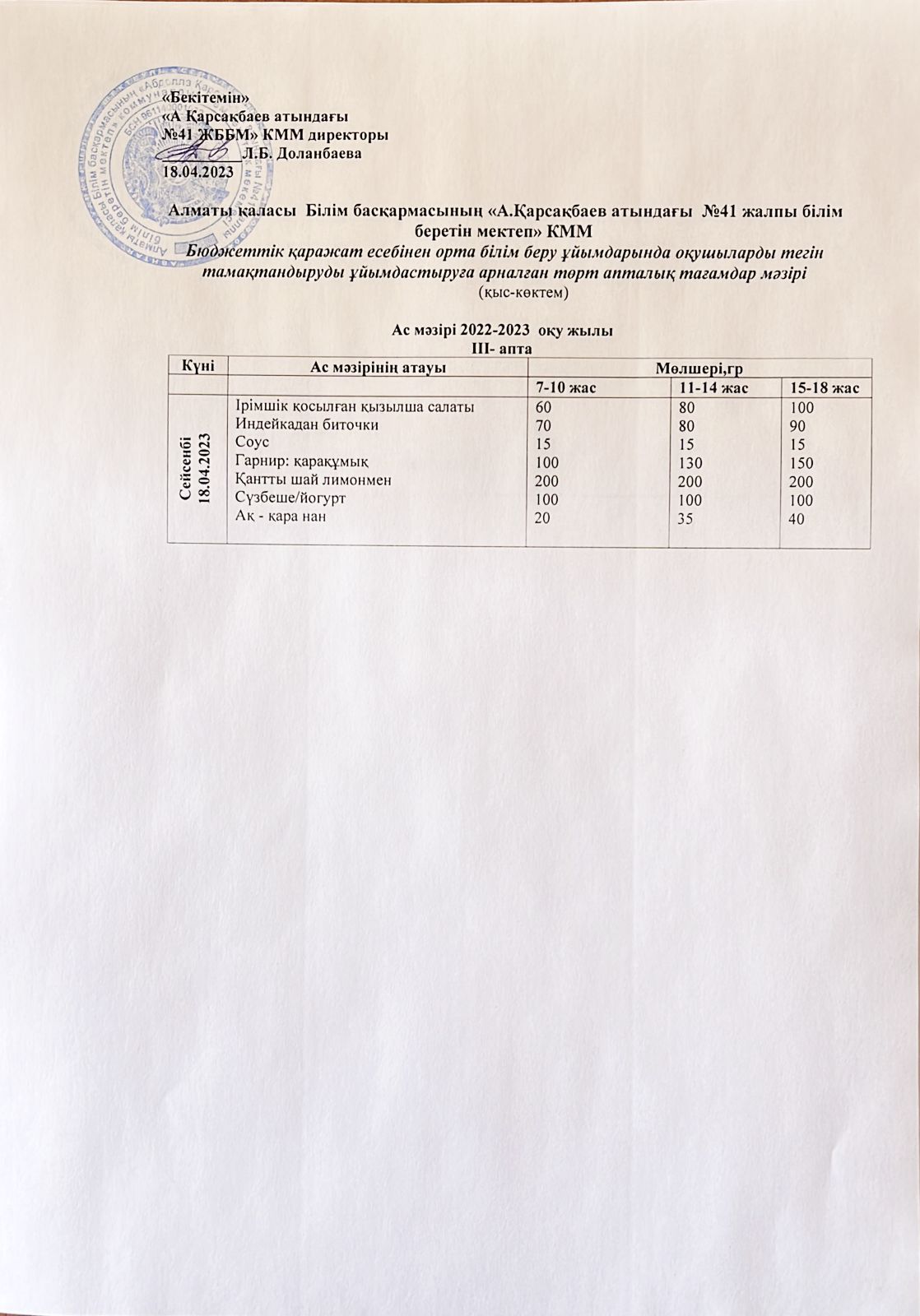 Ас мәзірі 18.04.2023
