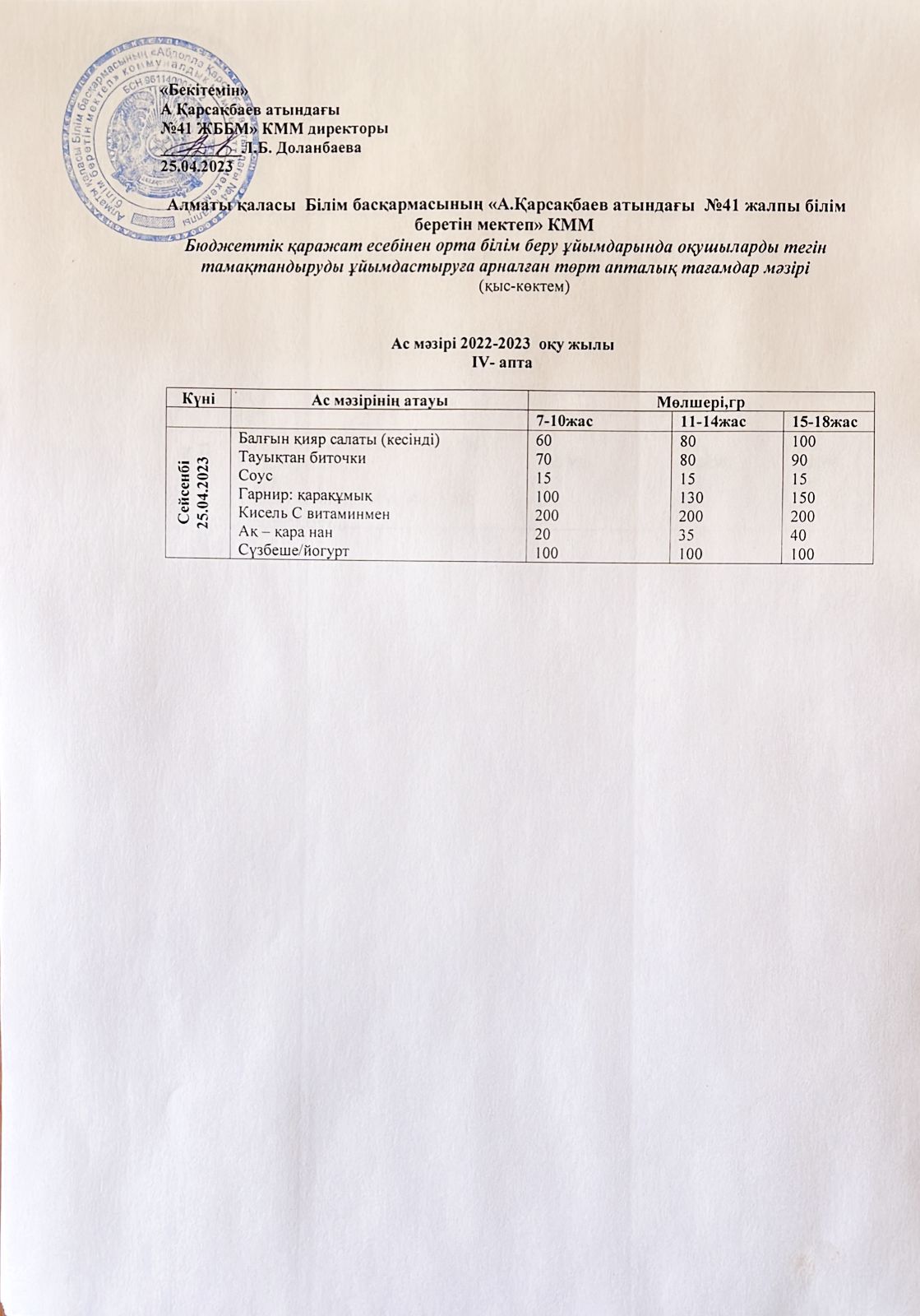 Ас мәзірі 25.04.2023
