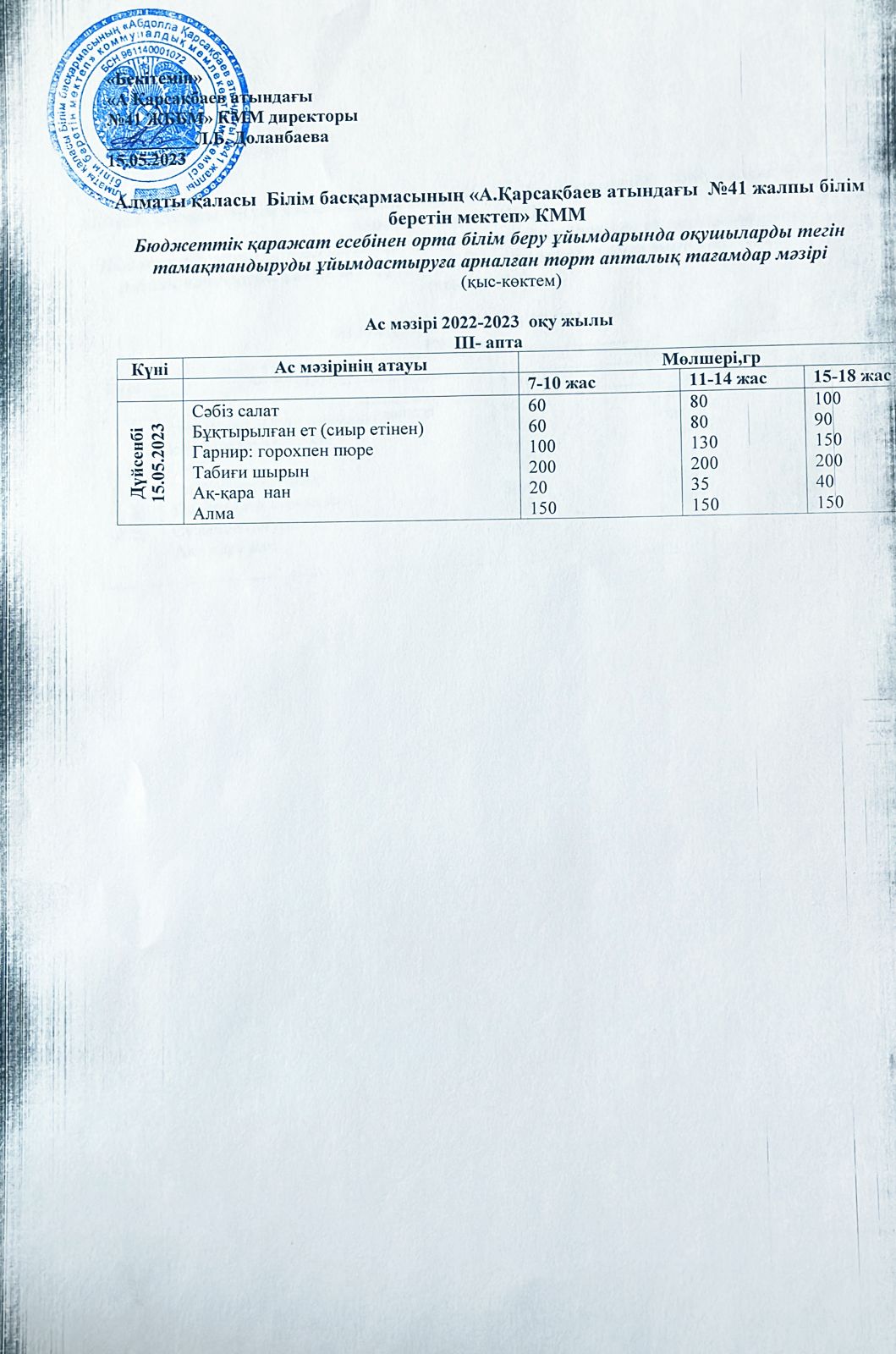 Ас мәзірі 15.05.2023
