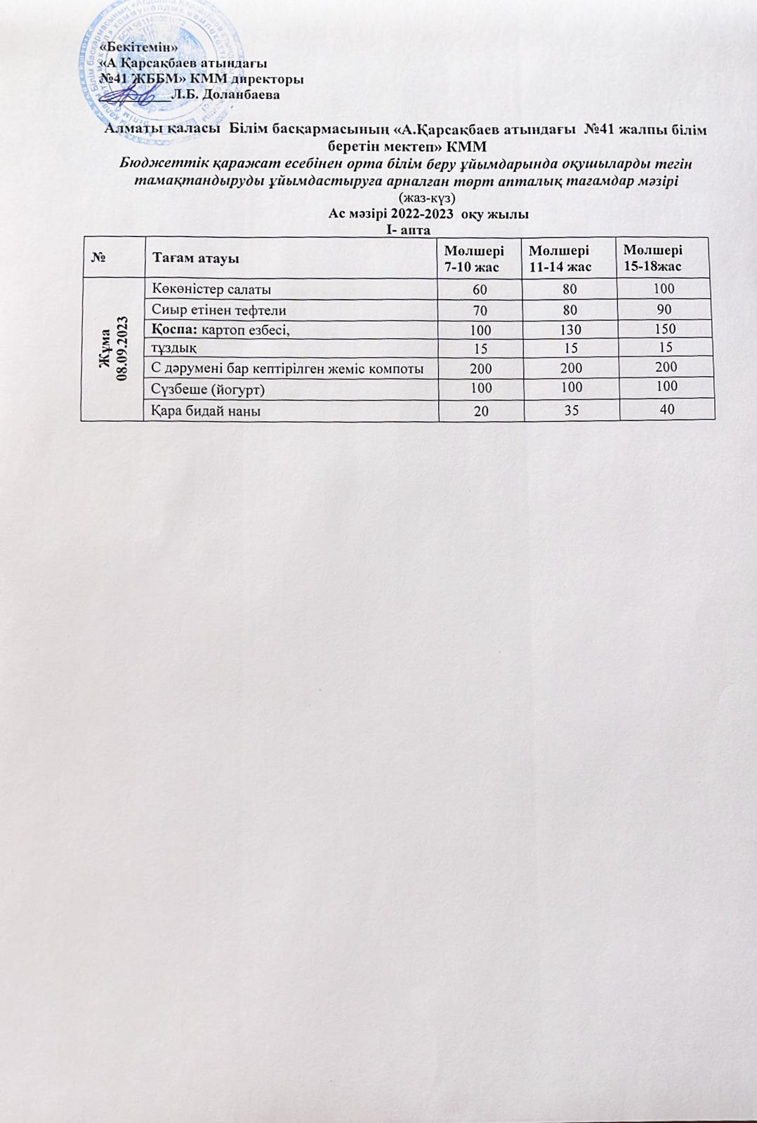 Ас мәзірі 08.09.2023 ж. 1-ші апта 5-ші күн