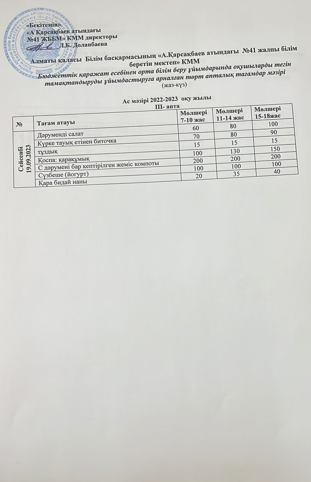 Ас мәзірі 18.09.2023 ж. 3-ші апта 1-ші күн