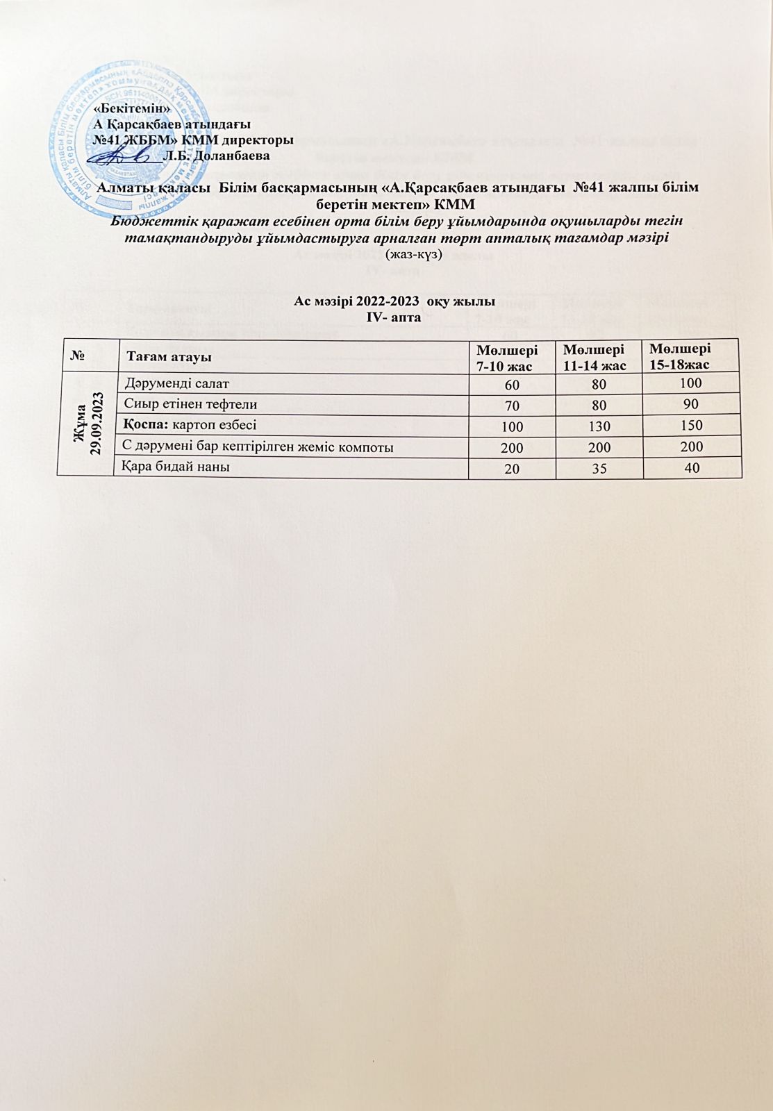 Ас мәзірі 08.09.2023 ж. 1-ші апта 5-ші күн