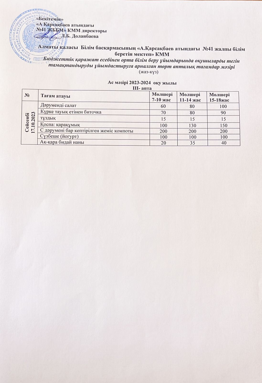Ас мәзірі 17.10.2023 ж.3-ші апта 2-ші күн