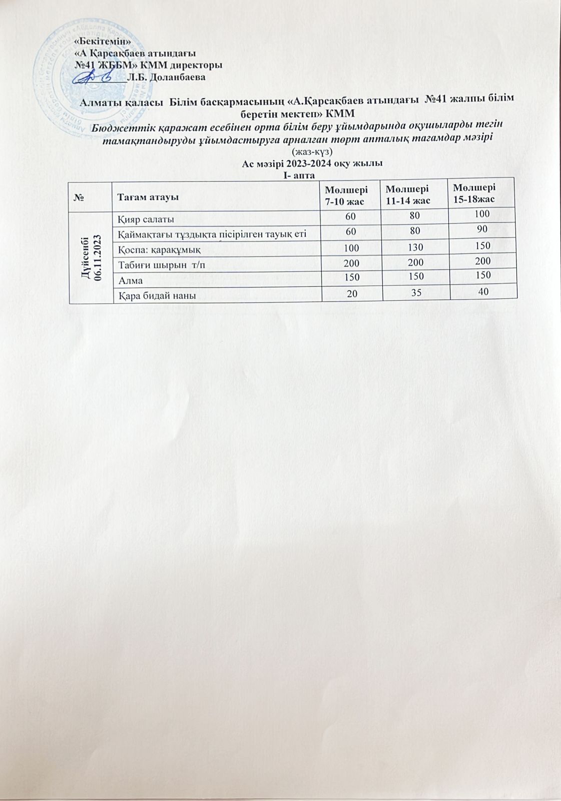 Ас мәзірі 06.11.2023 ж. 1-ші апта 1-ші күн