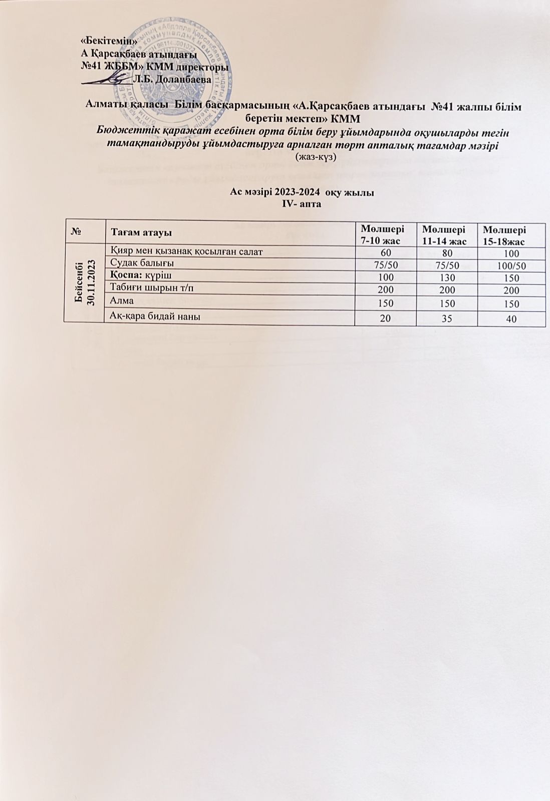 » Ас мәзірі 30.11.2023 ж. 4-ші апта 4-ші күн
