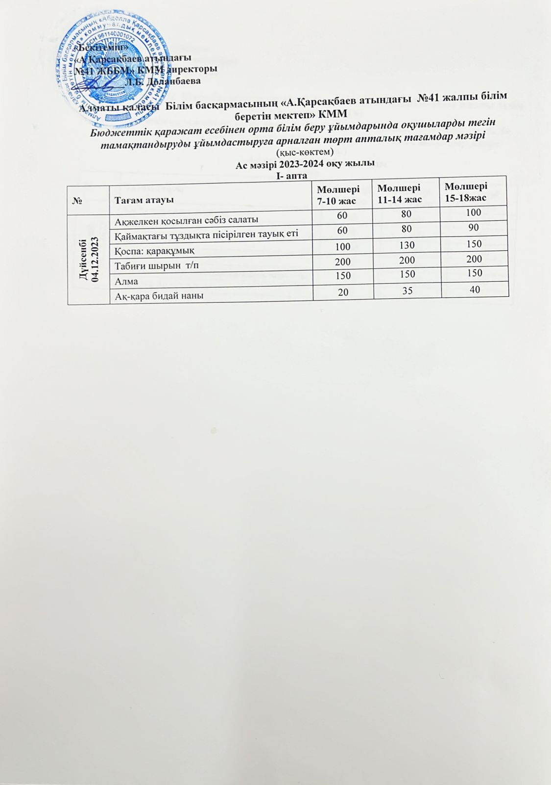 » Ас мәзірі 04.12.2023 ж. 1-ші апта 1-ші күн