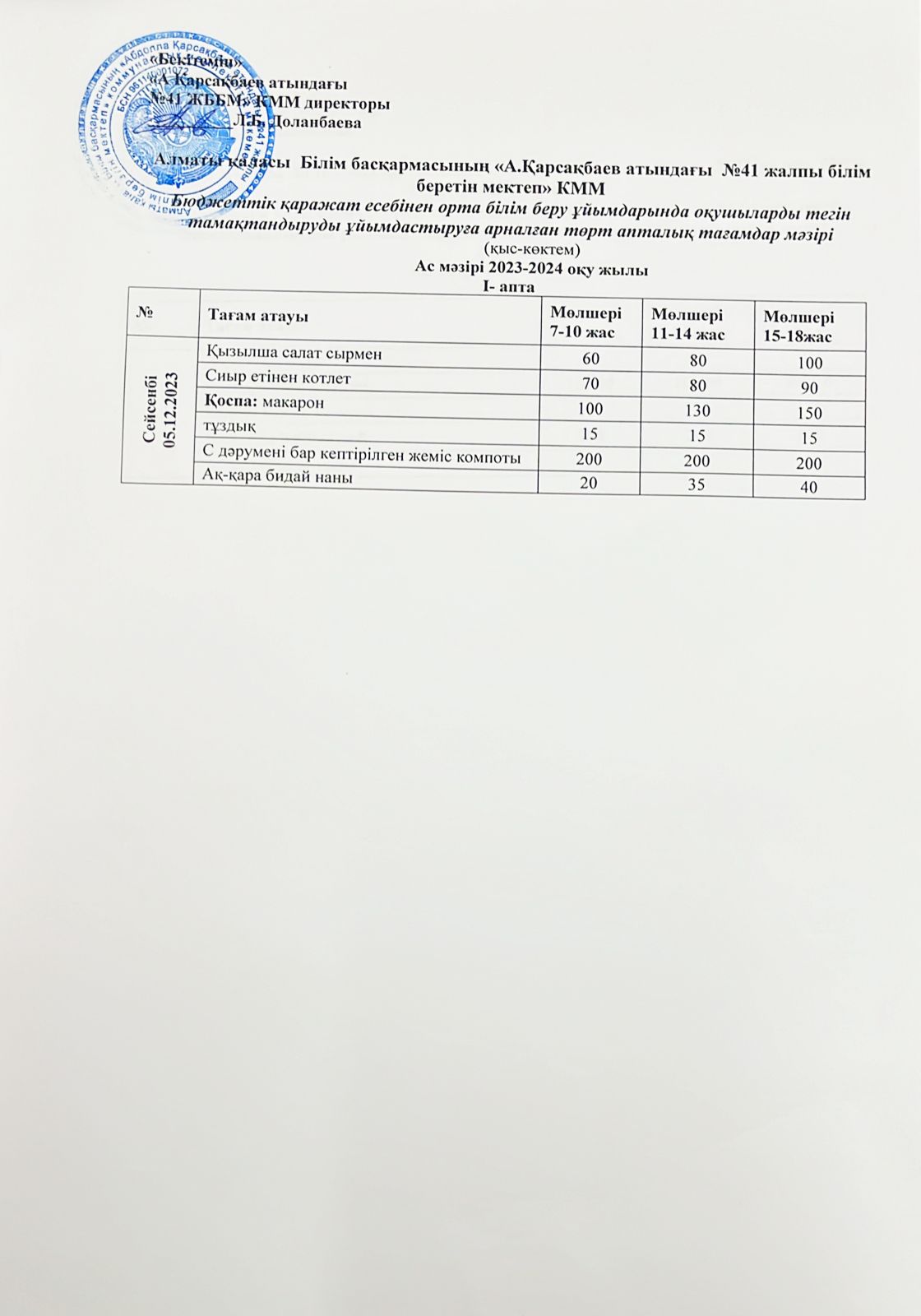 Ас мәзірі 05.12.2023 ж. 1-ші апта 2-ші күн